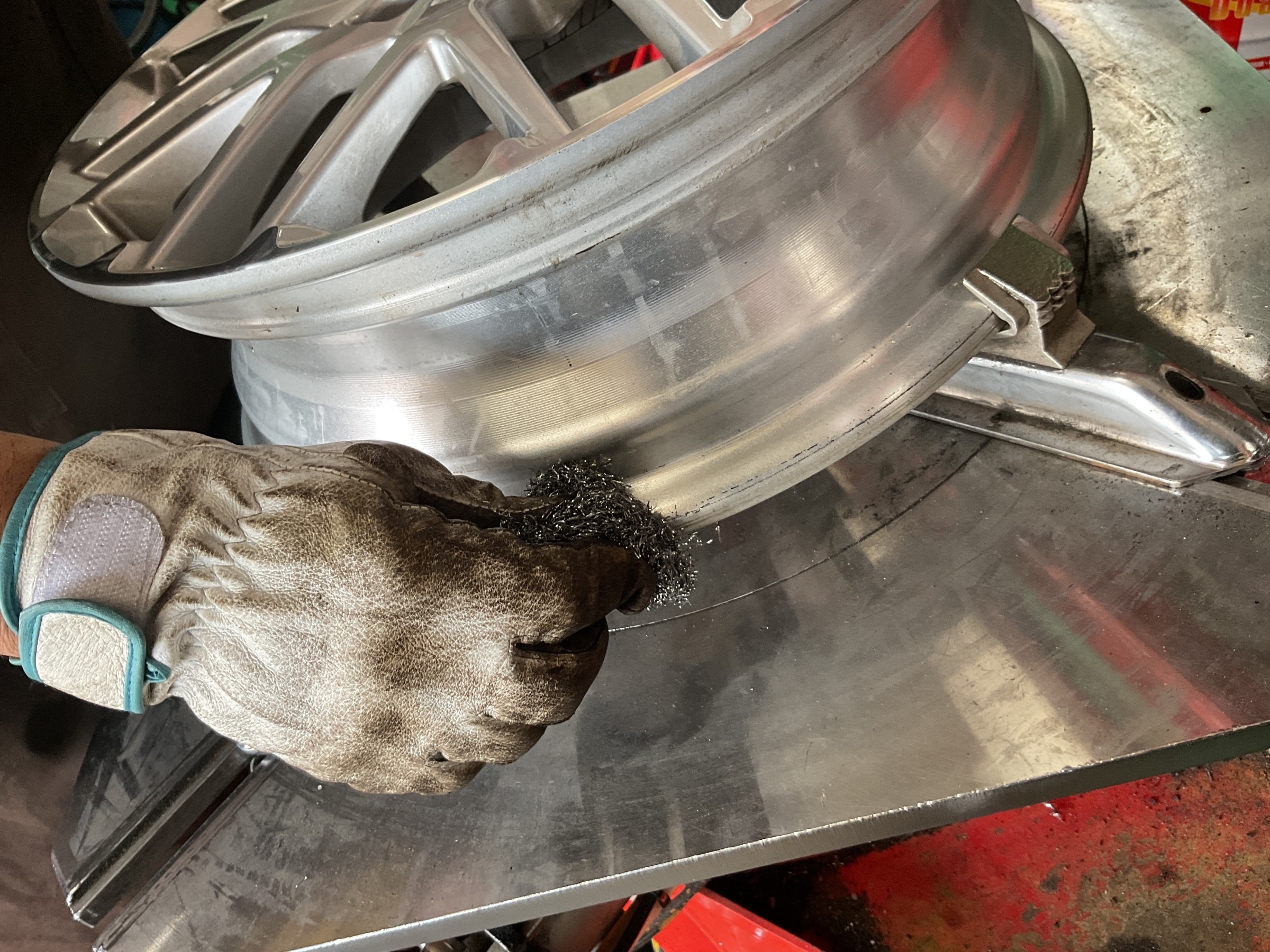 ホイールを磨きます。