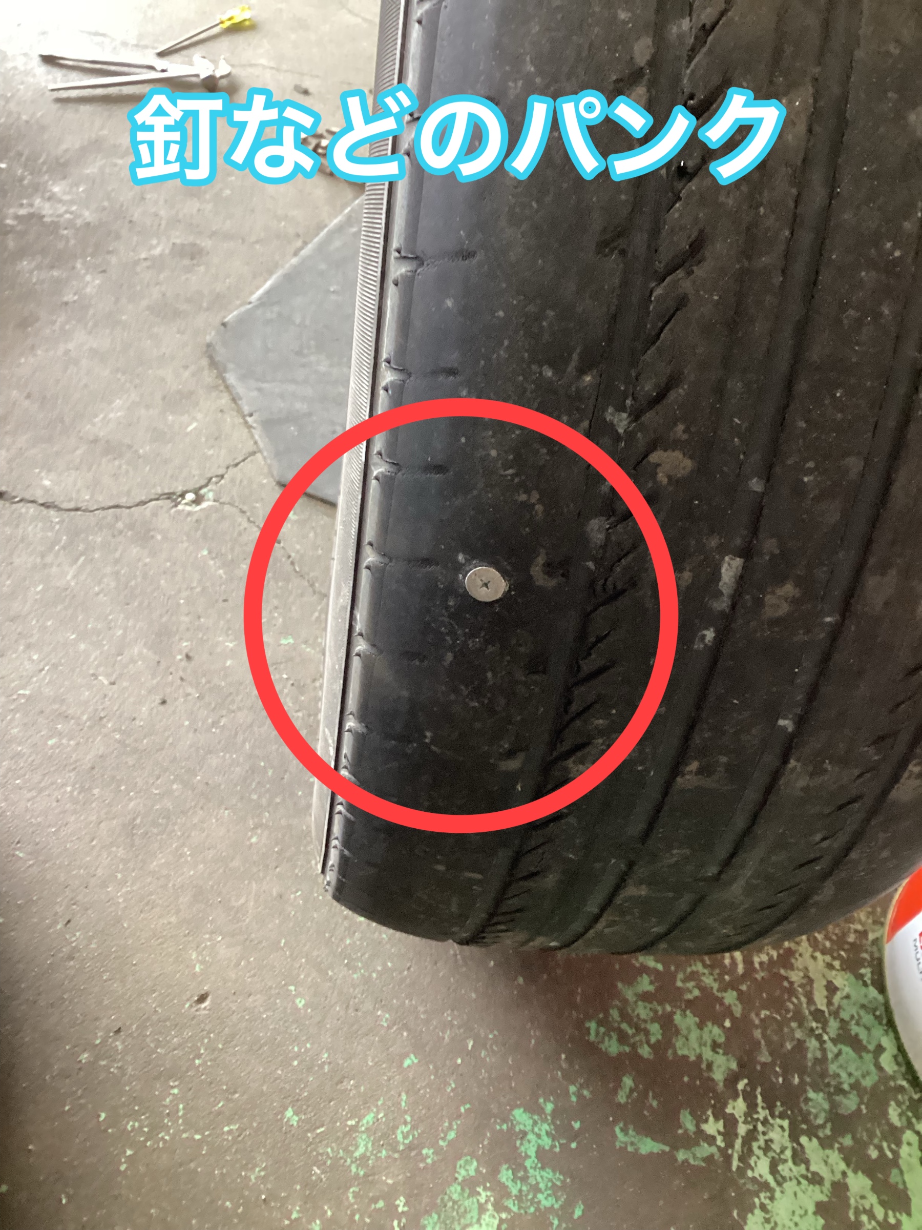 パンクした場合は走行せずにスペアタイヤに交換かレッカー移動にてお車を動かして下さい。