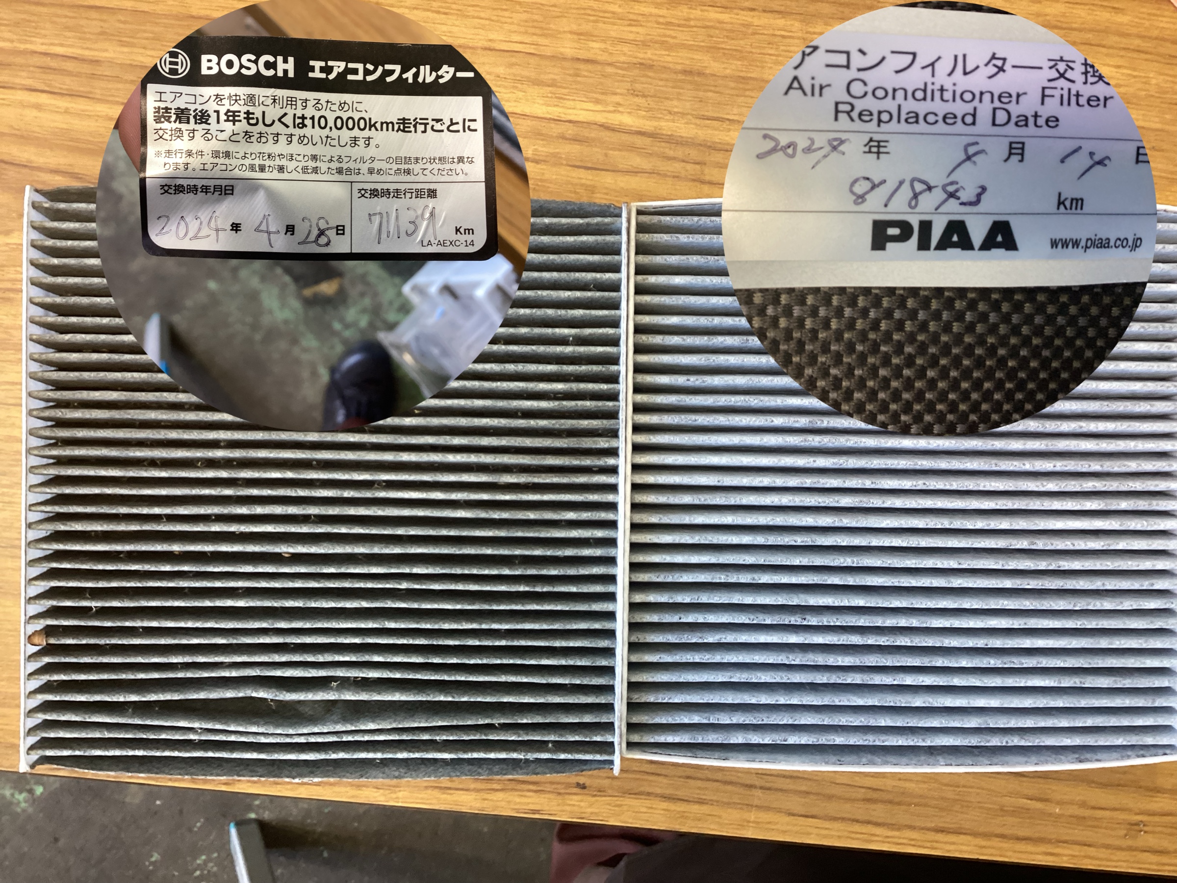 走行距離、年数共に約1年1万キロ走行の比較です 走る場所や外気、内気循環で汚れ具合は変わり