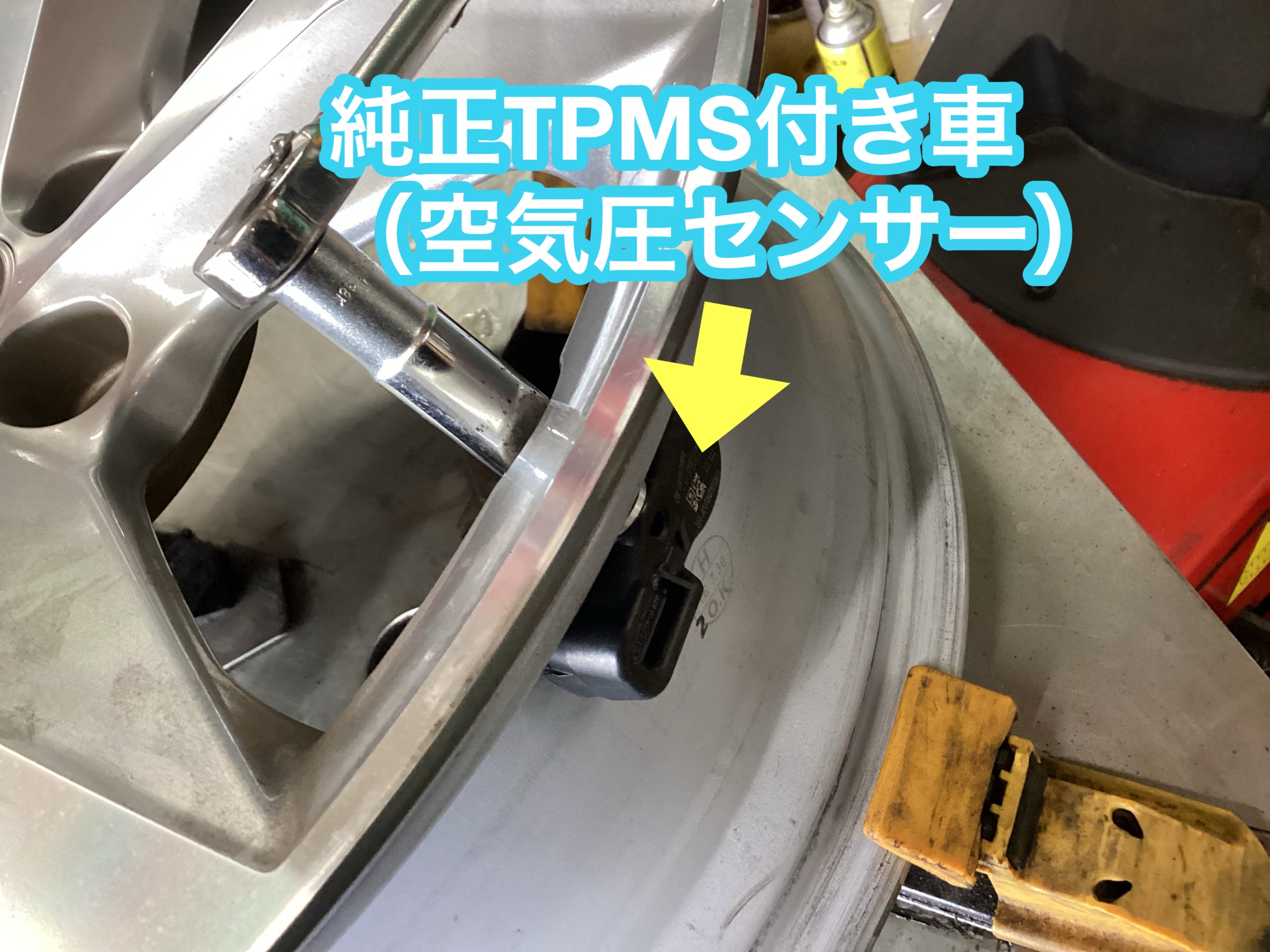純正空気圧センサー付きのお車で今回は再使用しました。
