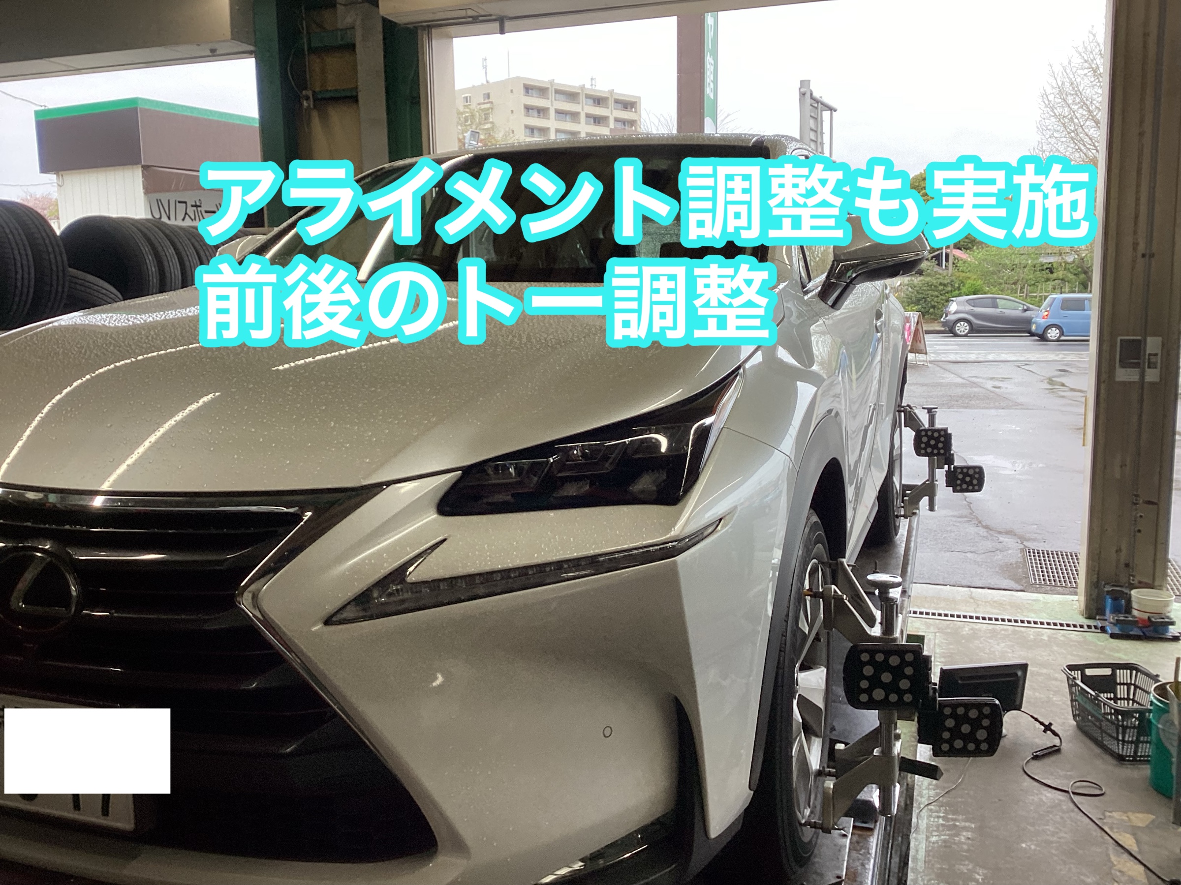 レクサスNXタイヤ4本交換&アライメント調整実施しました。