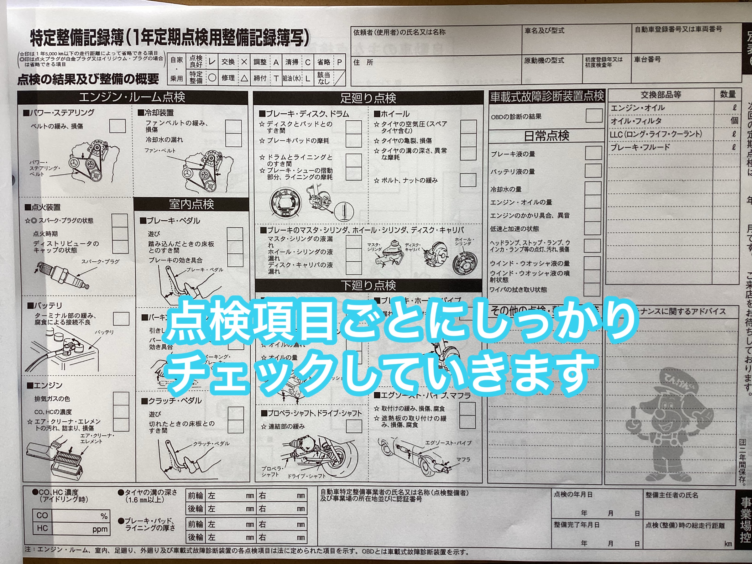 当店では法定12ヶ月点検予約受付しております 予約頂き作業時間目安1時間の目安となります