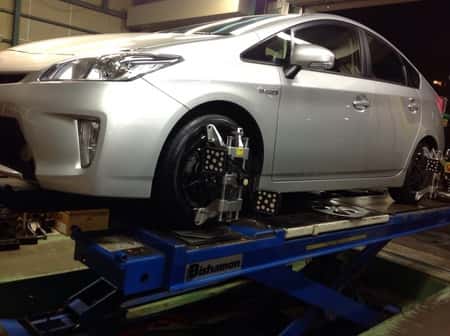 本日はプリウスのアライメント調整のご案内です。足廻りをぶつけてしまいまっすぐに