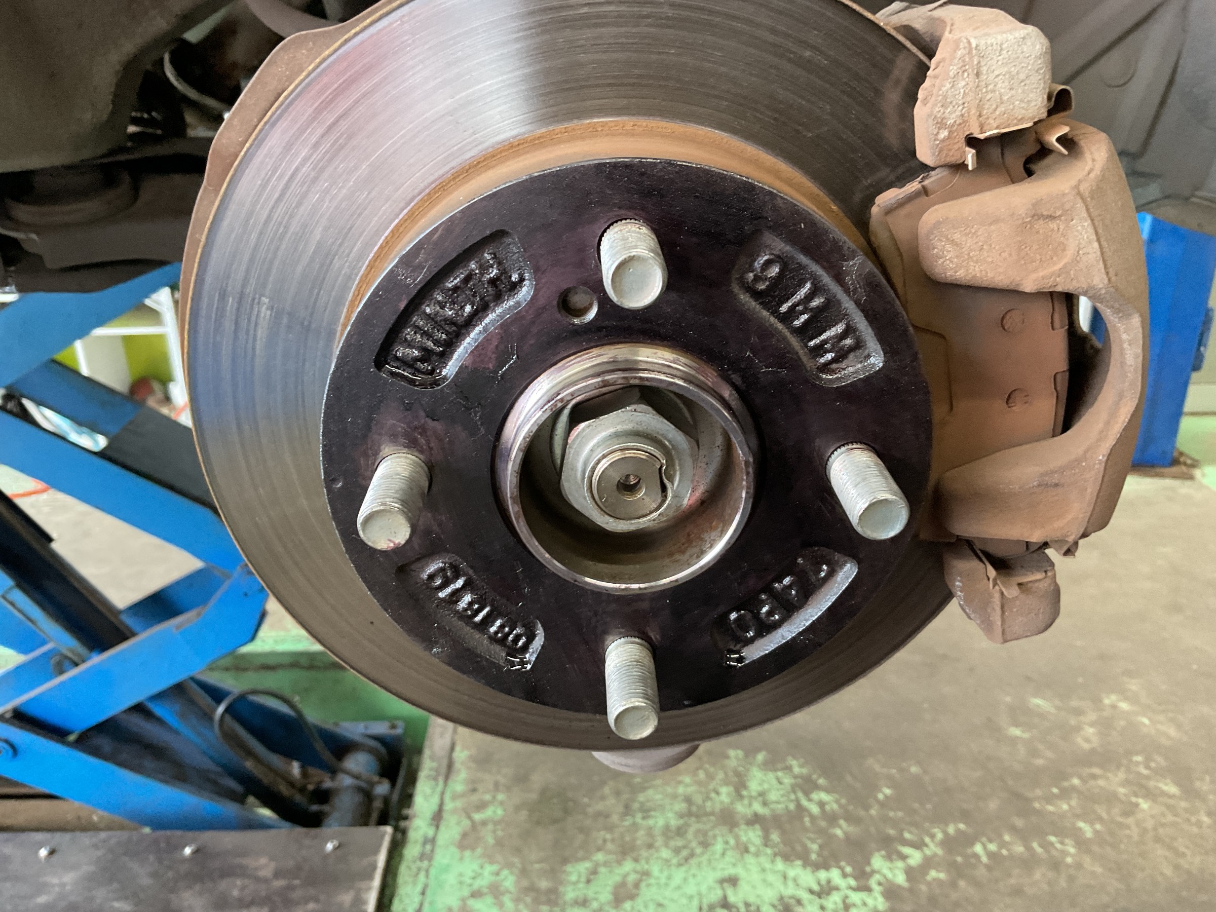 ここが錆で凸凹してしまうとホイールのブレにもつながりますので鉄を守る被膜の 黒錆 に転換する液剤&防錆コーティングでしっかりと保護させていただきました(ノ゚∀゚)ノ