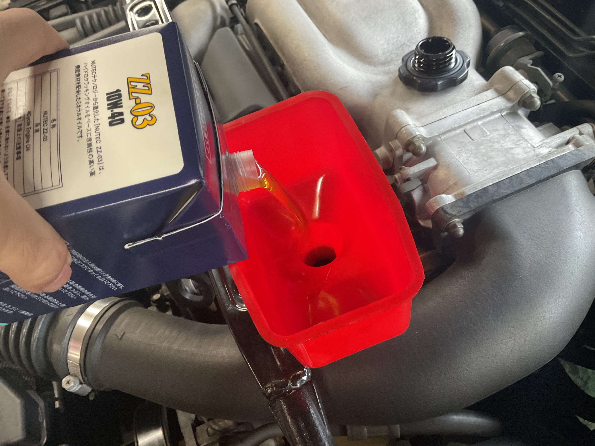 今回使用するZZ-03は水素化精製ミネラルという高品質な鉱物油で、元から粘度の高い鉱物油にはポリマーが含まれていない為にロータリーエンジンには最適なオイル!