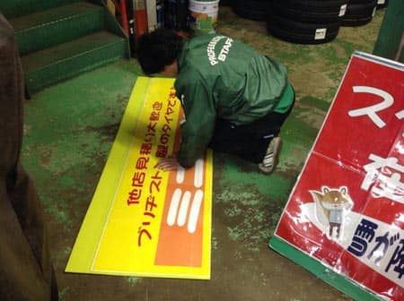 只今店頭に飾ってあるタイヤラックを改装中です。お客様がタイヤを選びやすいように