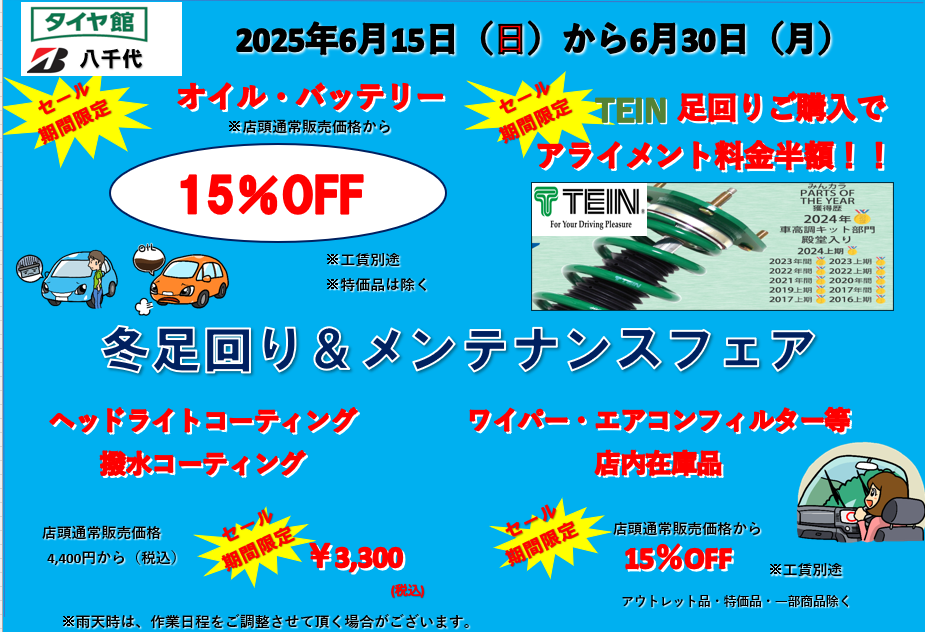 6月15日(日)から6月30日(月)まで、足回り&メンテナンスフェアを開催中です。