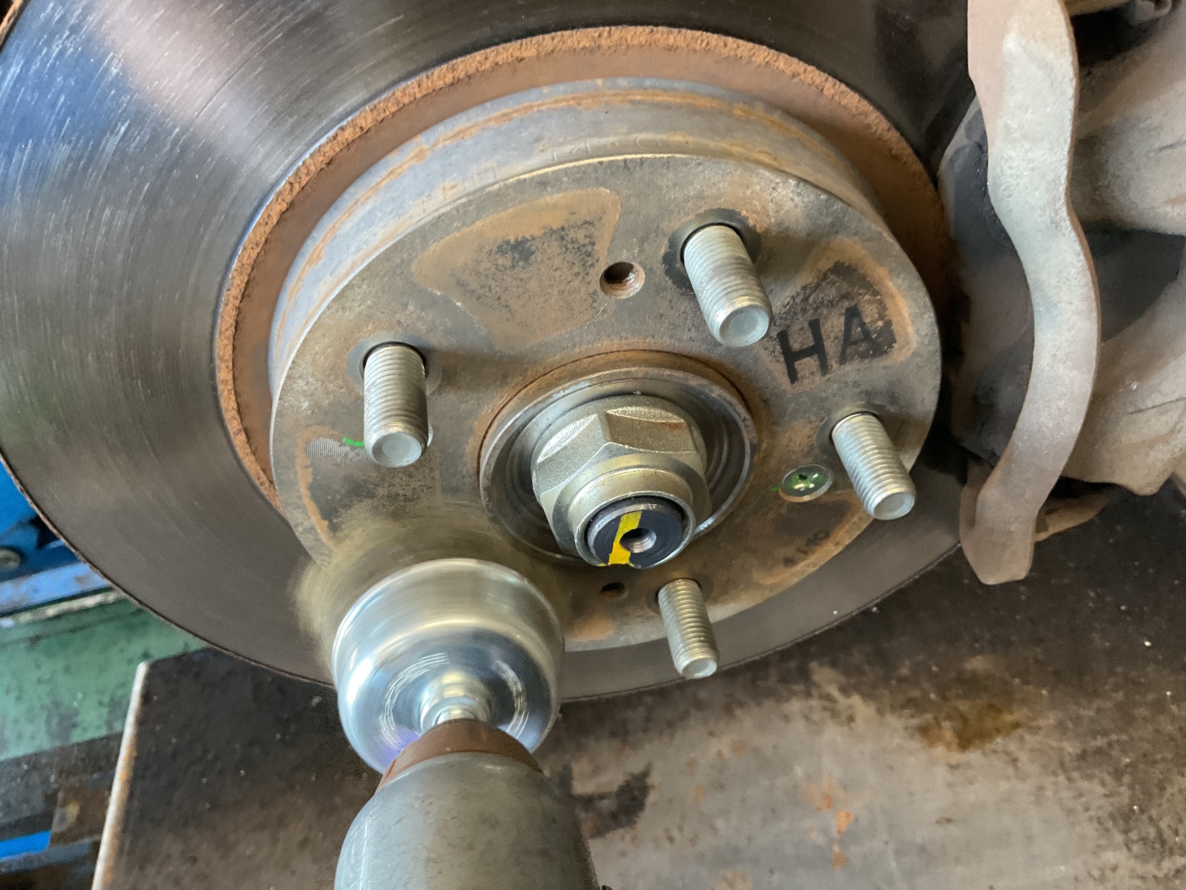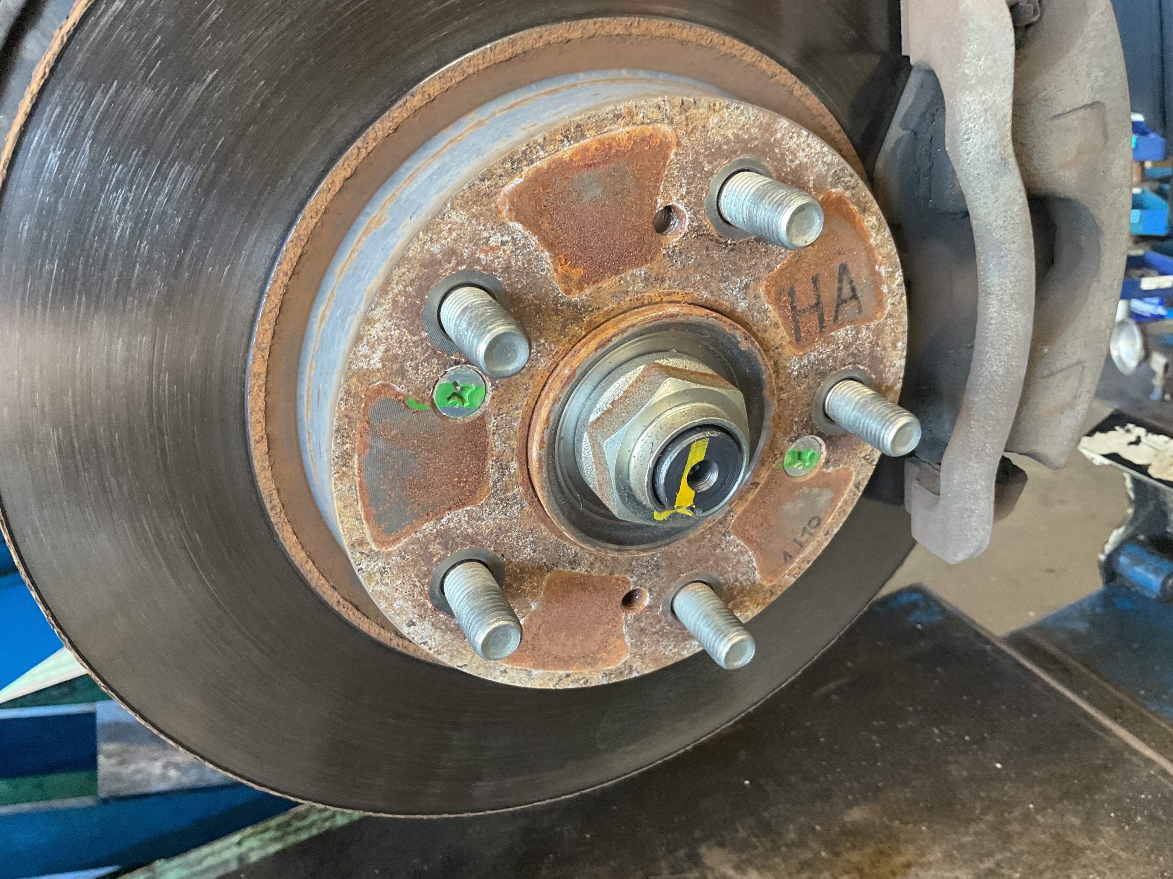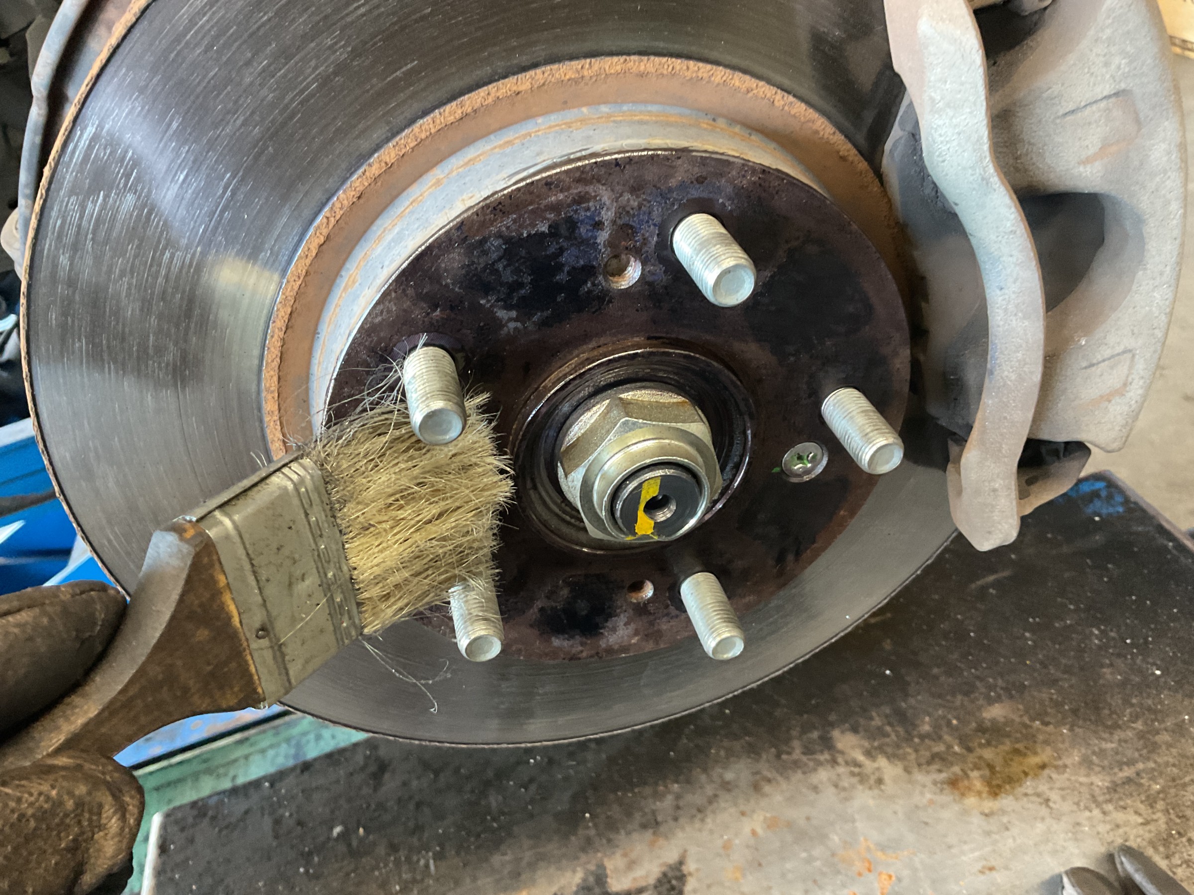 タイヤホイールを外すと、ハブやその周辺にサビがいっぱい!