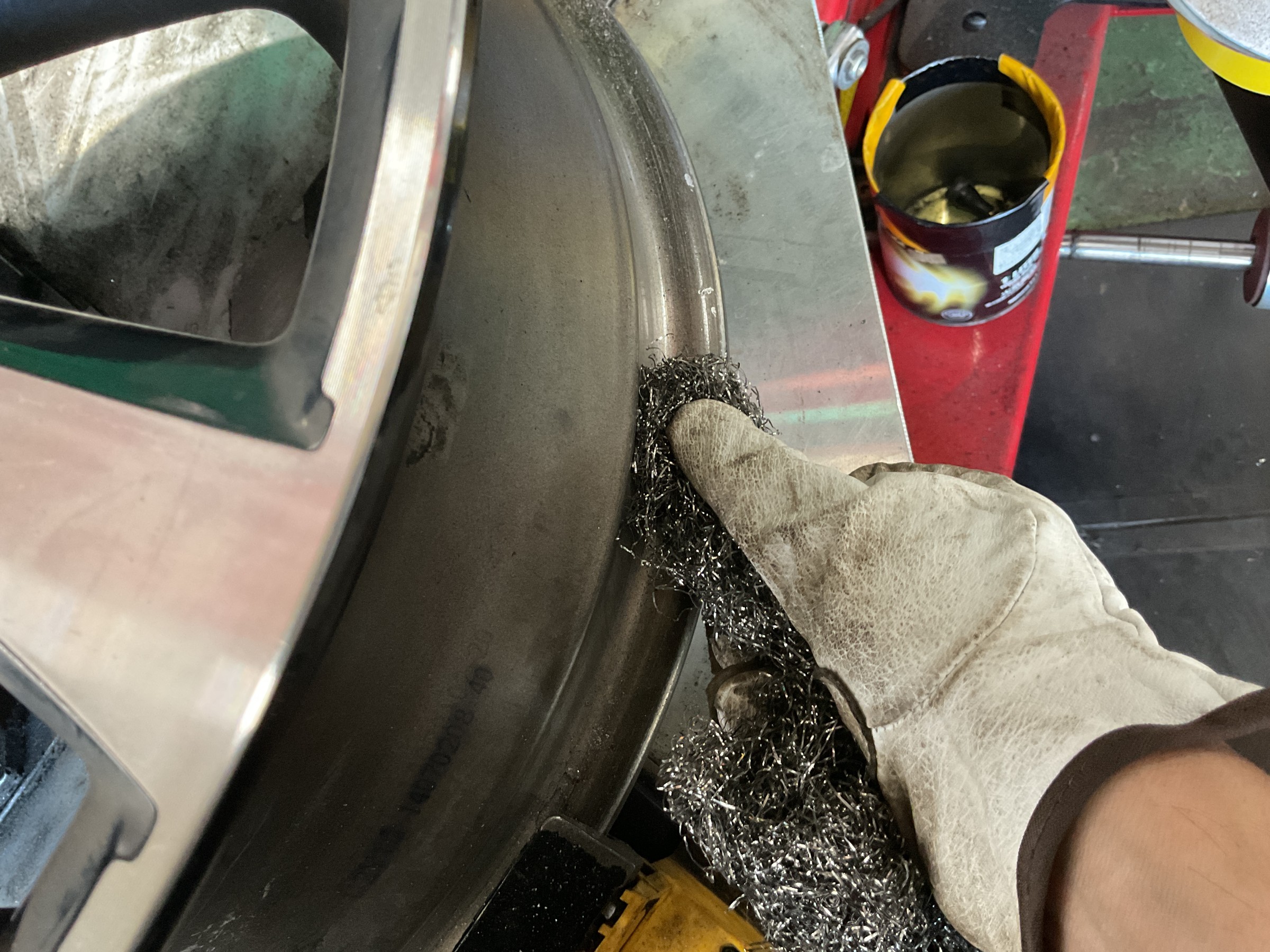 タイヤとホイールの密着面は空気漏れの原因になってしまう汚れが溜まってしまうところなので、しっかり磨き落として除去しますヾ(゚д゚)ノ゛