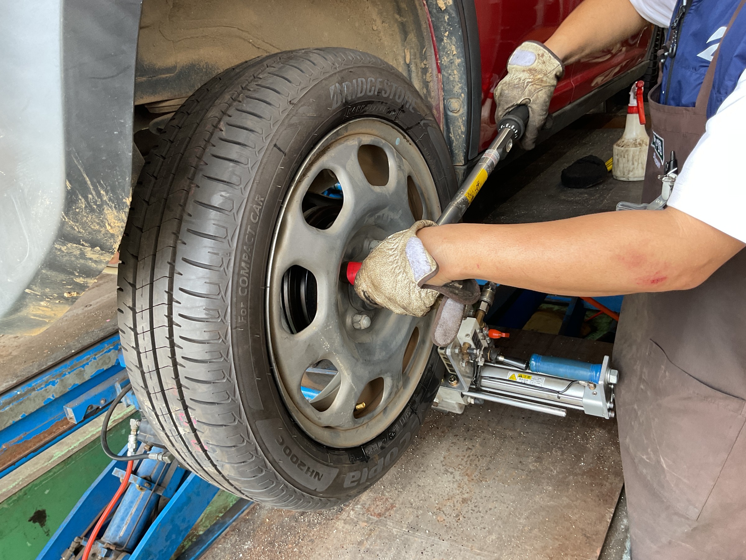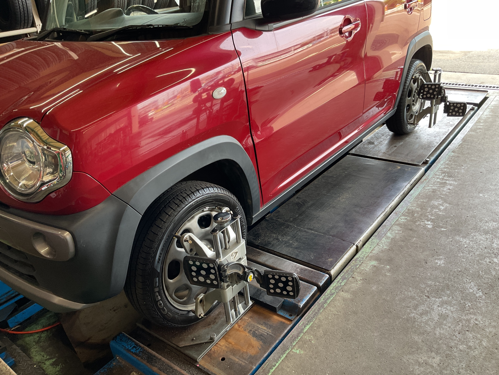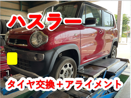 今回は、ハスラーのタイヤ交換+アライメントの作業のご紹介です。