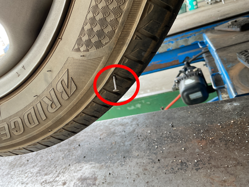 釘の刺さっている位置が、丁度タイヤの肩の部分だったため、修理が行えませんでした。