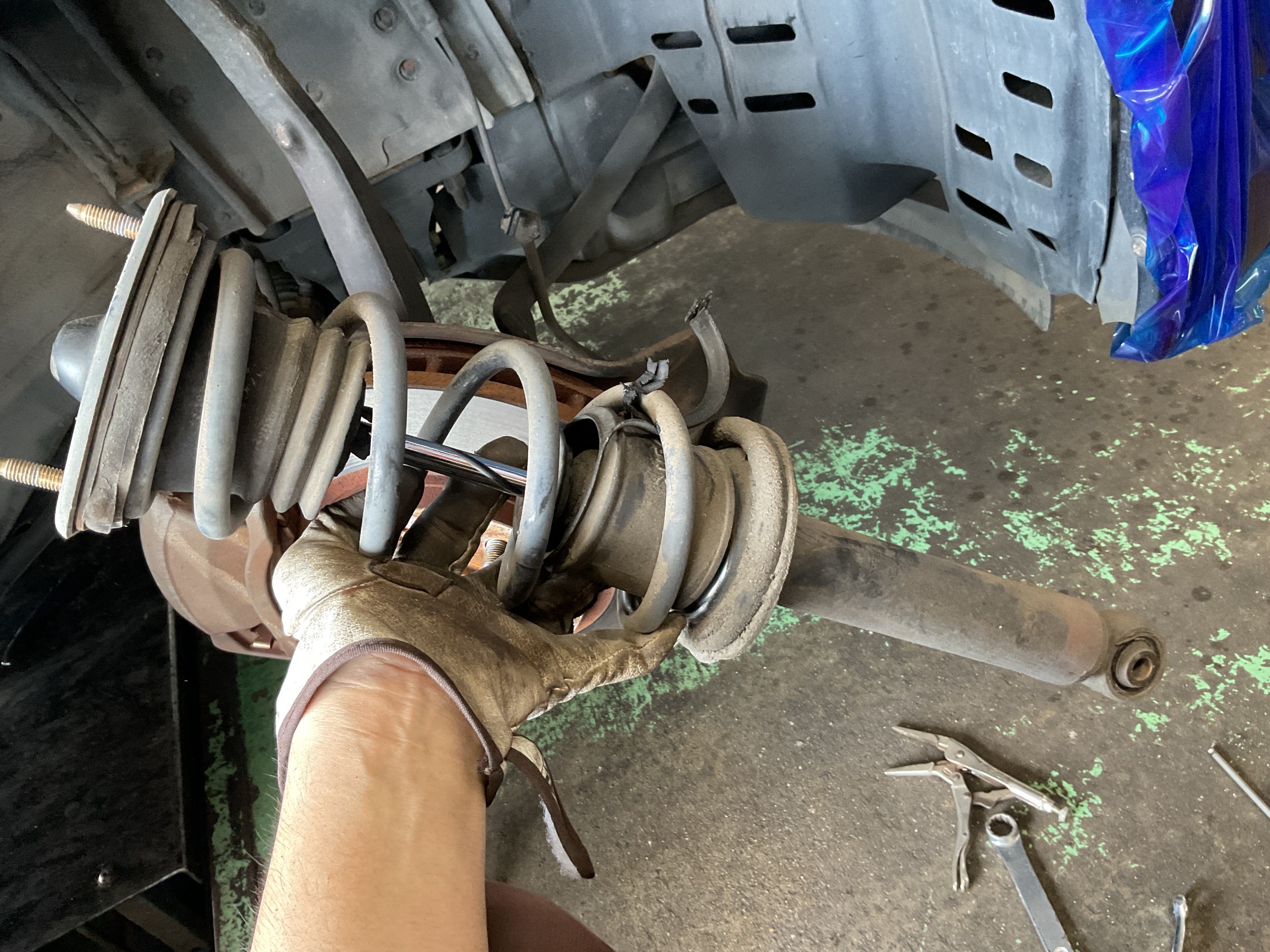 外し方さえ知っていればダブルウィッシュボーンのアッパーは切り離さなくてもショックアブソーバーは抜けるので時短になります(っ´∀`)っ