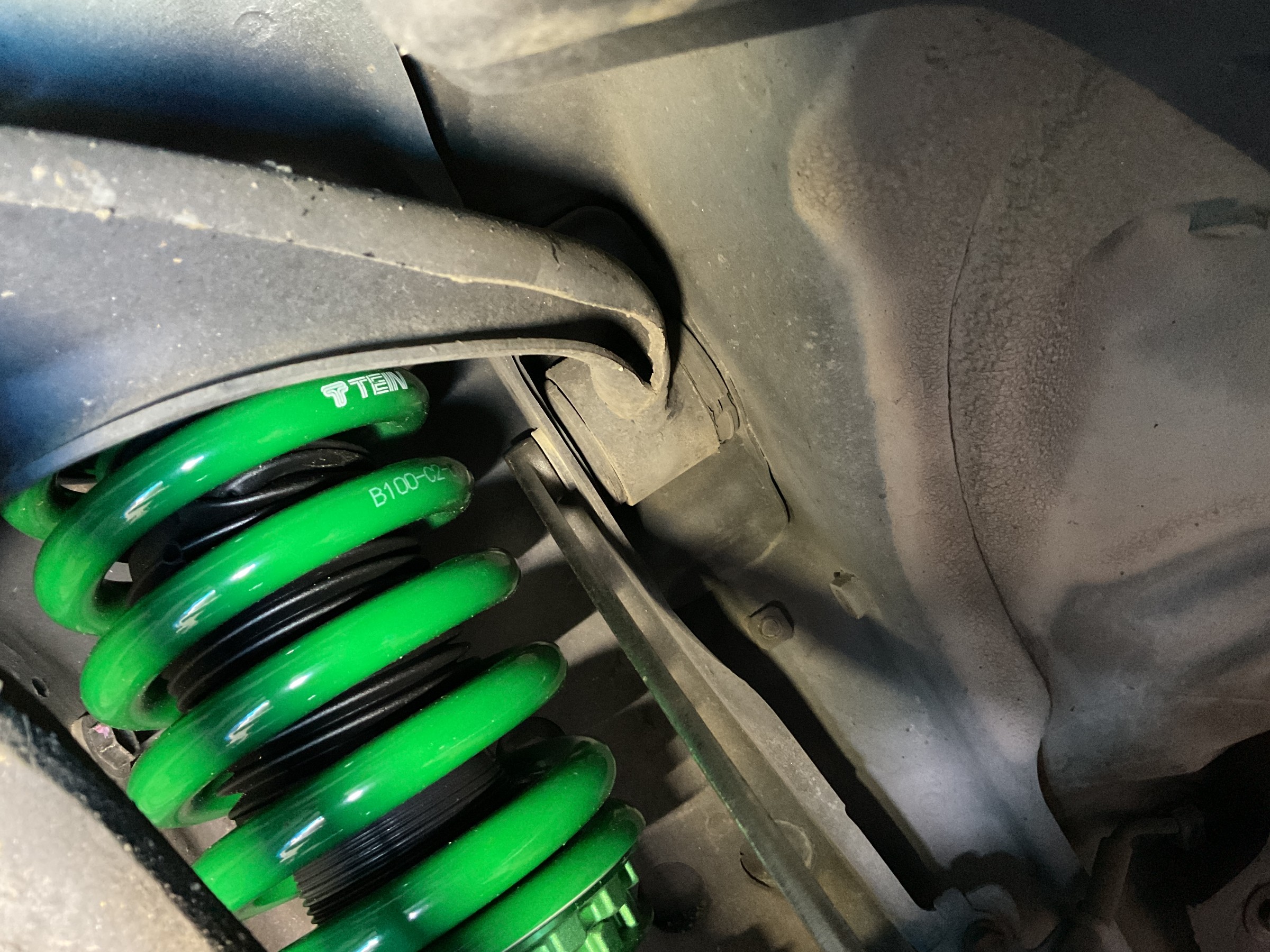 もし「車高調(もしくはダウンサス)を装着したのにあまり車高が落ちないな~」とか「せっかく乗り心地重視の車高調を入れたのに、乗り味が硬すぎて不満!」いう場合はアームブッシュの1G締めをしていないことによってブッシュが突っ張っているのかもしれませんね(;゚д゚)