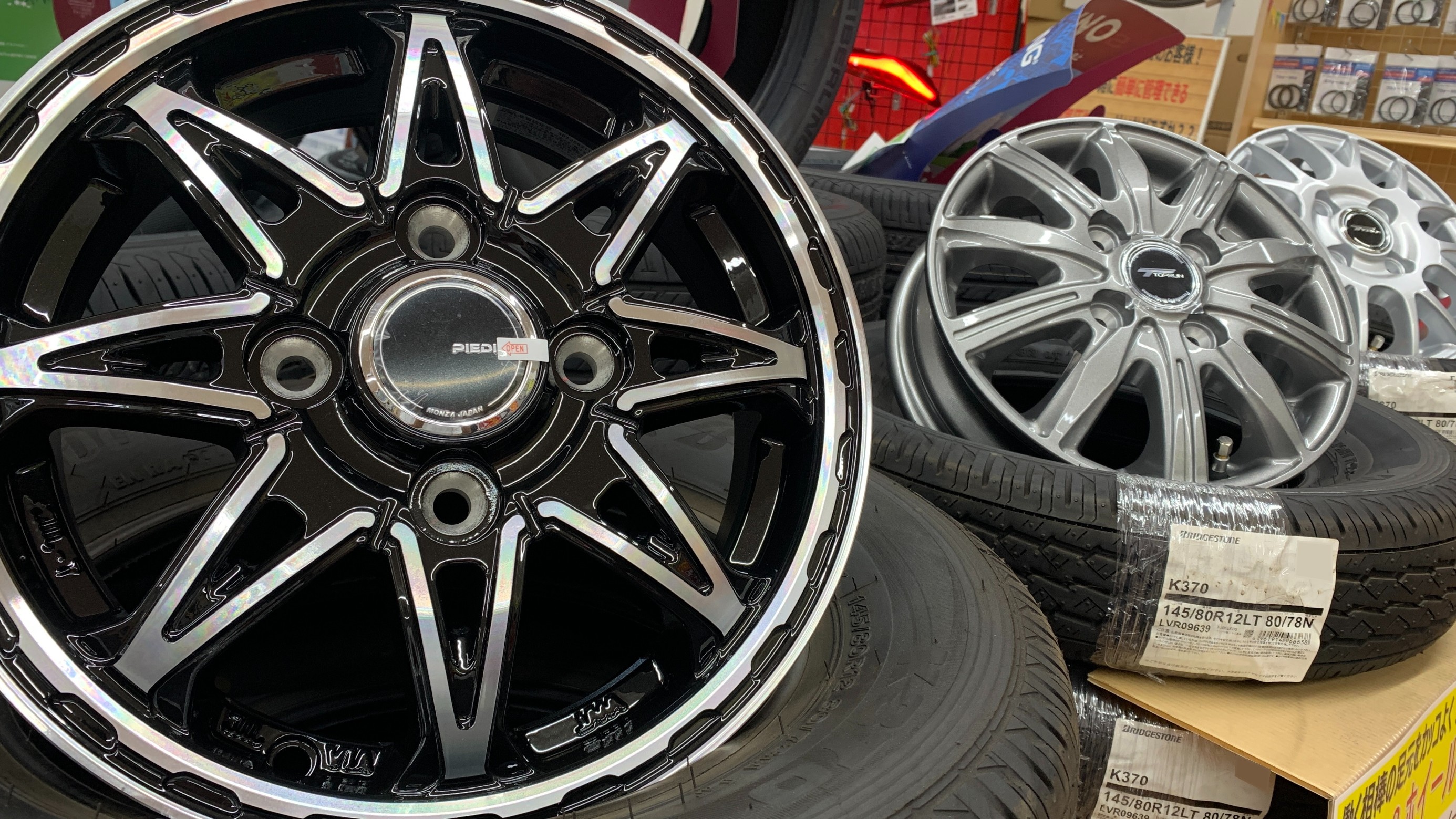 ブリヂストン製の軽トラック・軽バン専用タイヤ「K370」とアルミホイールの組み合わせ!