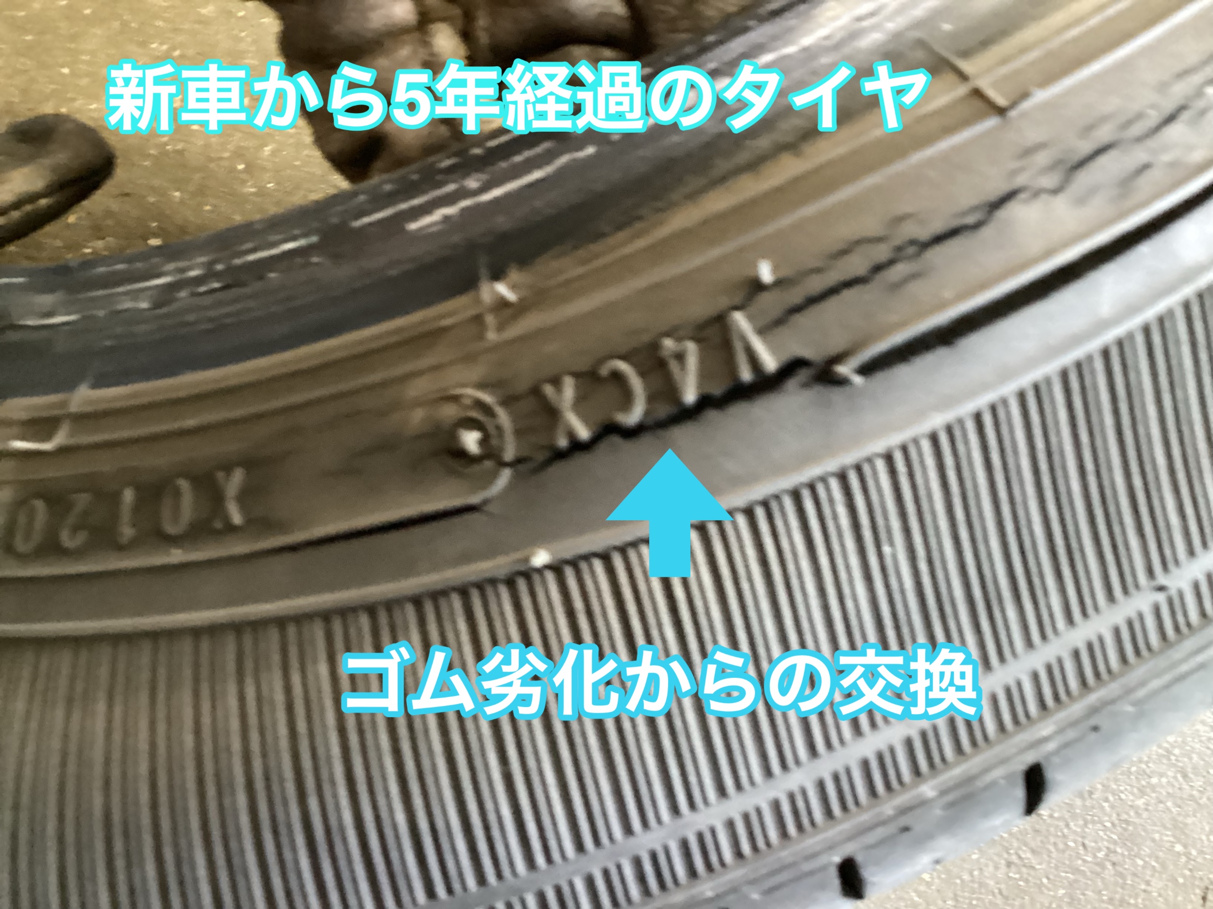 本日は新車装着から5年経過してゴムが劣化してひび割れしてしまった状態からの交換