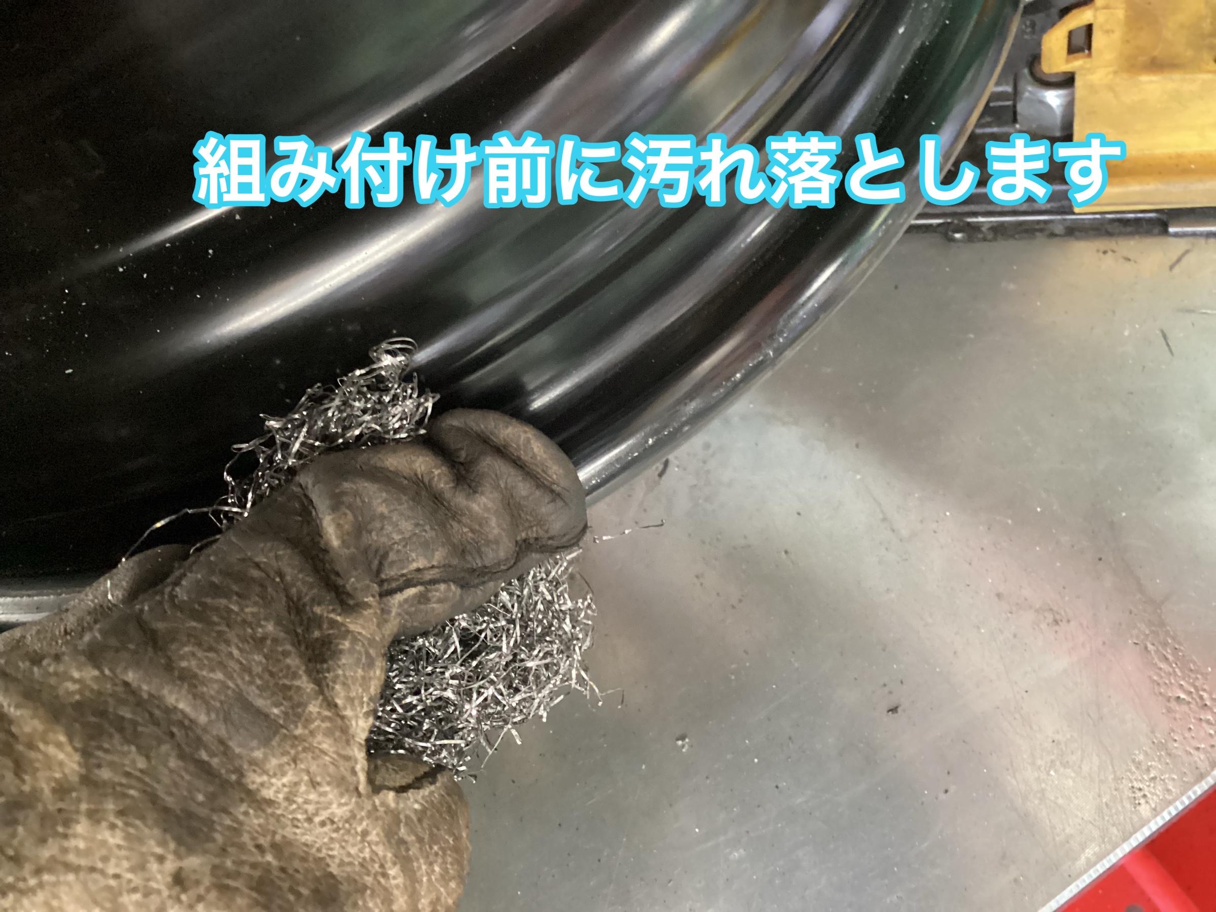 組付け前はホイール側を汚れゴムのカスなどしっかり落とします。