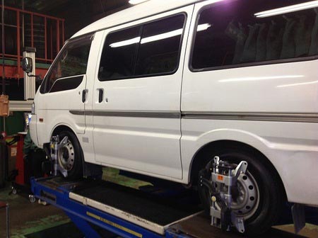 ボンゴのアライメントです・意外と乗用車より働く車バンの方が過酷に走られてたりします