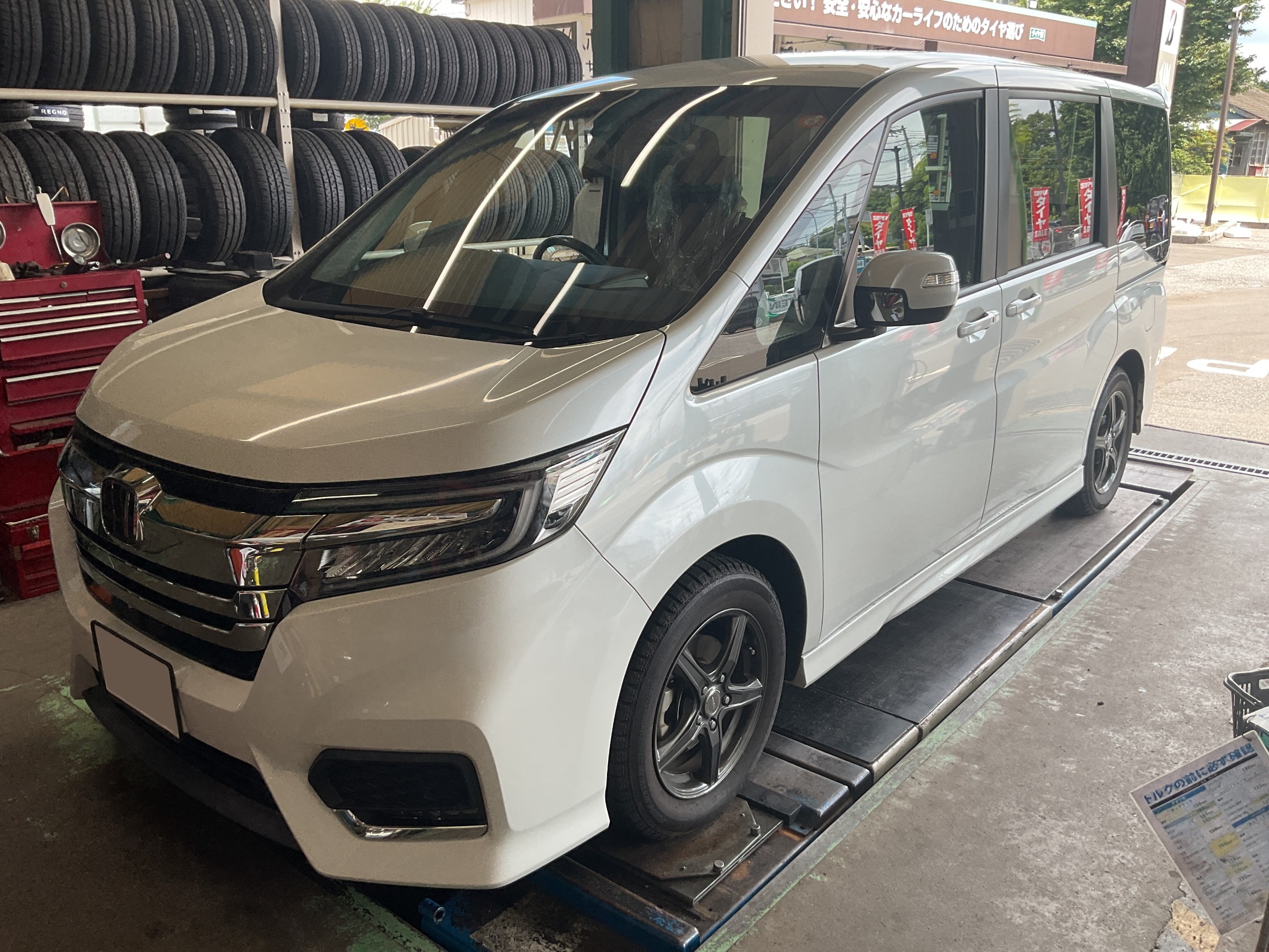 ホンダRP3型ステップワゴン、ミニバン専用レグノでタイヤ交換&アライメント調整!
