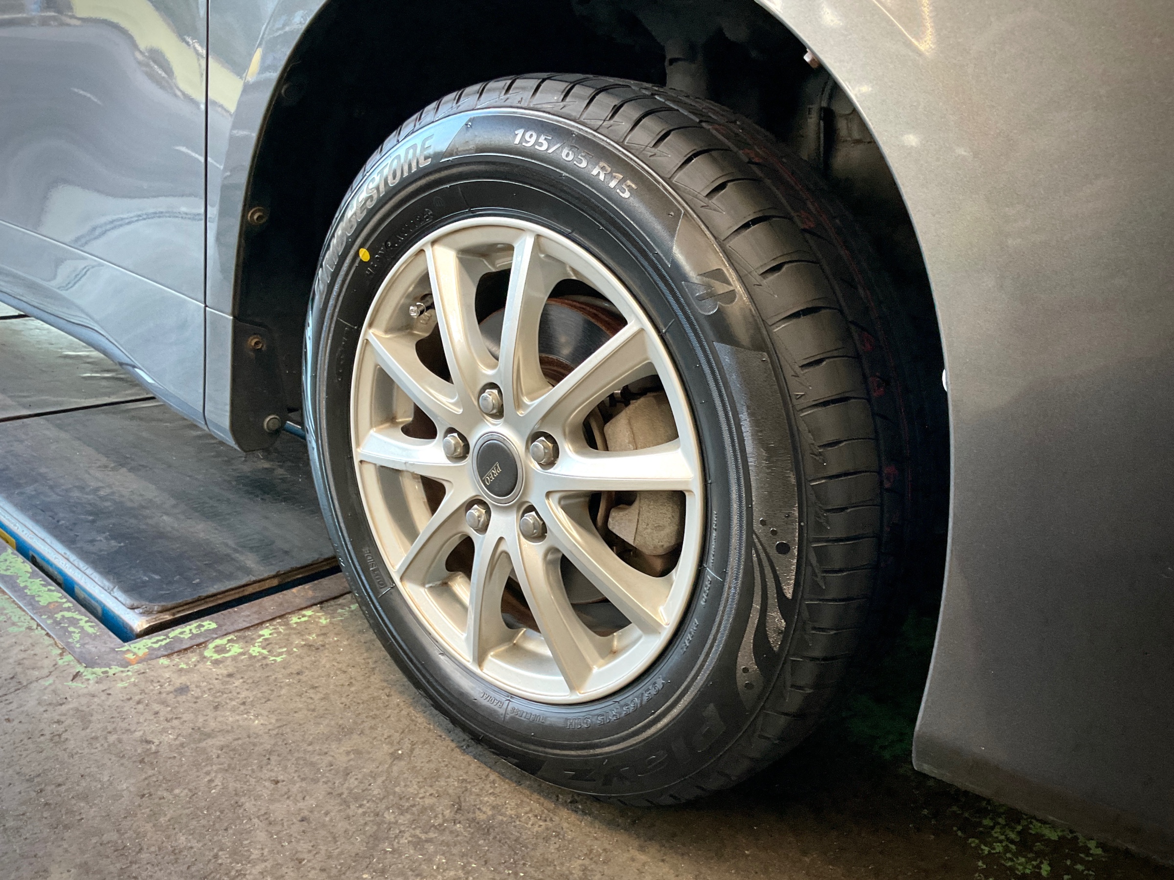 前回のタイヤ交換もお任せいただいた車両で、ブリヂストンオリジナルのアルミホイールも装着されています。