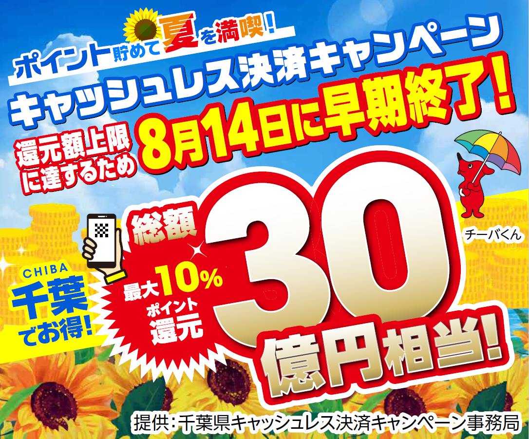 千葉県キャッシュレス決済キャンペーン早期終了のご案内