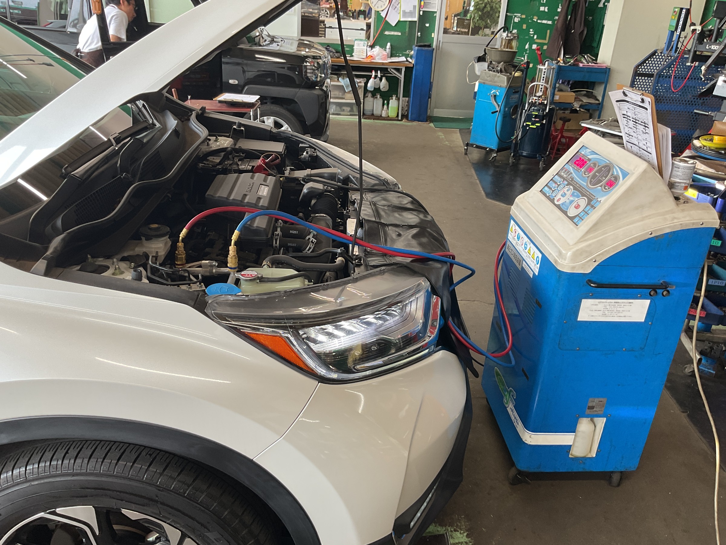 ホンダRW1型CR-V、エンジンオイル交換&エアコンガスクリーニング&エアコンガス添加剤!