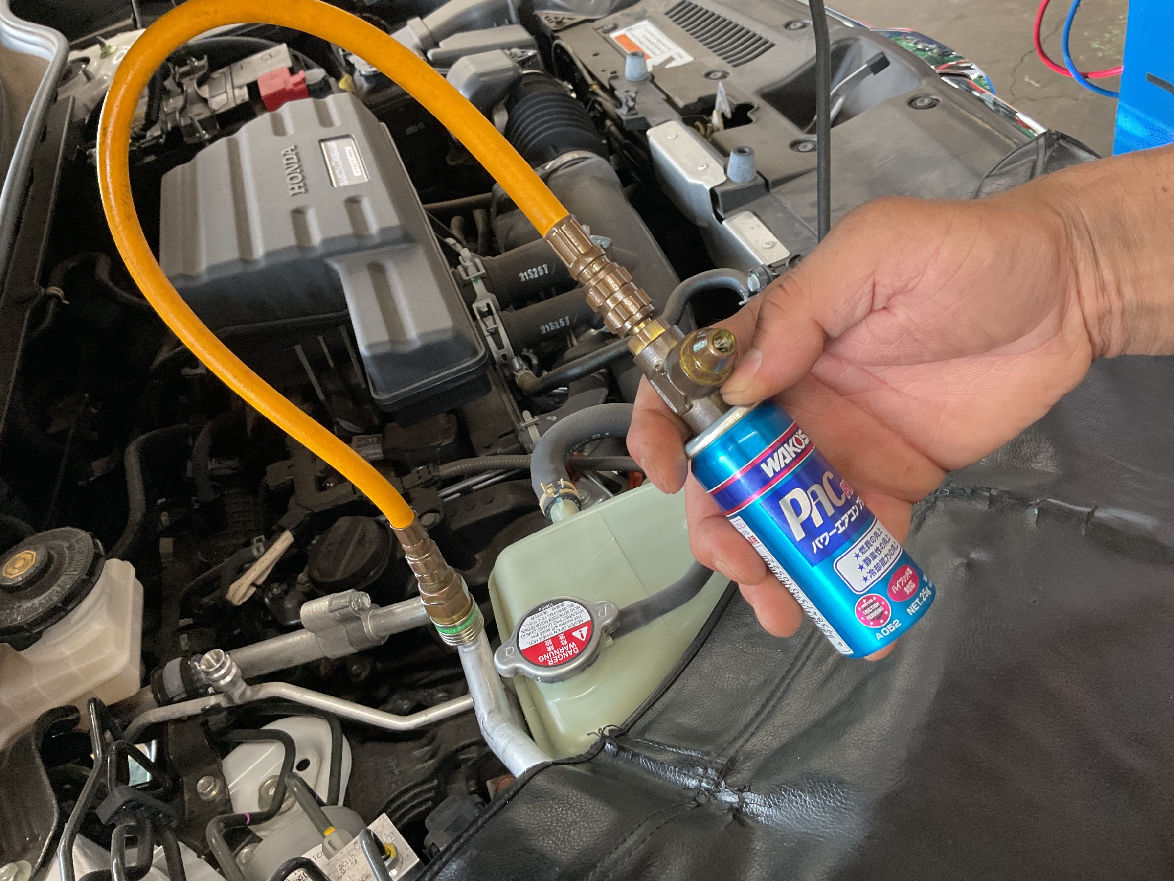 毎年夏季に爆売れ中のワコーズ パワーエアコンプラスというエアコンの栄養ドリンク的な添加剤を投入すると、