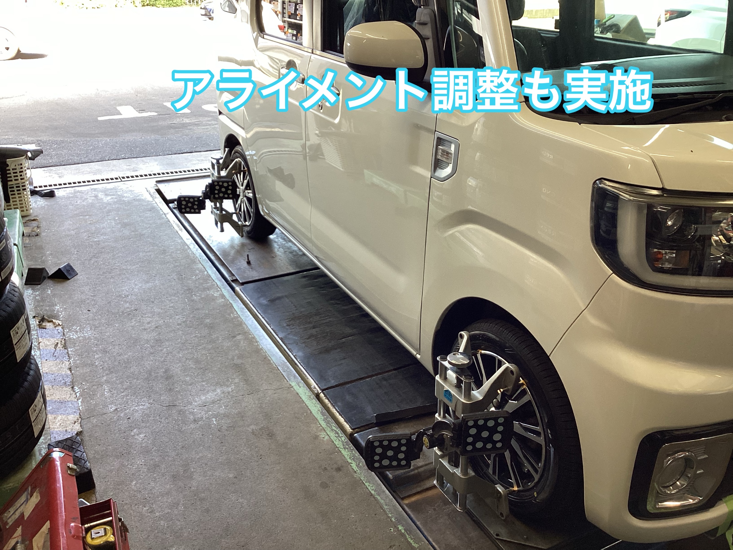 パンクでの走行 ウェイク タイヤ交換 アライメント調整 タイヤ館八千代
