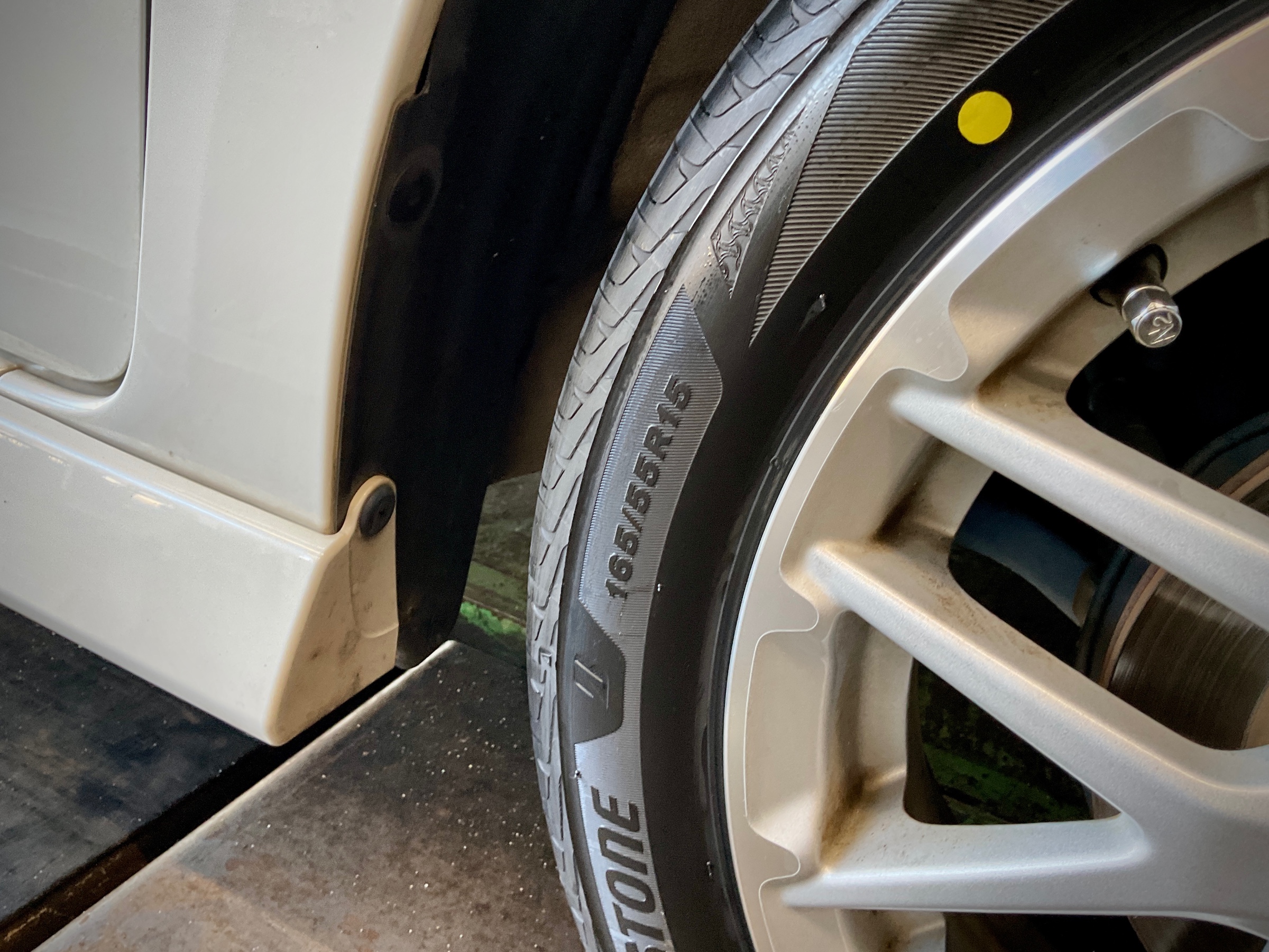 今回装着したタイヤのサイズは165/55R15 75Vです。