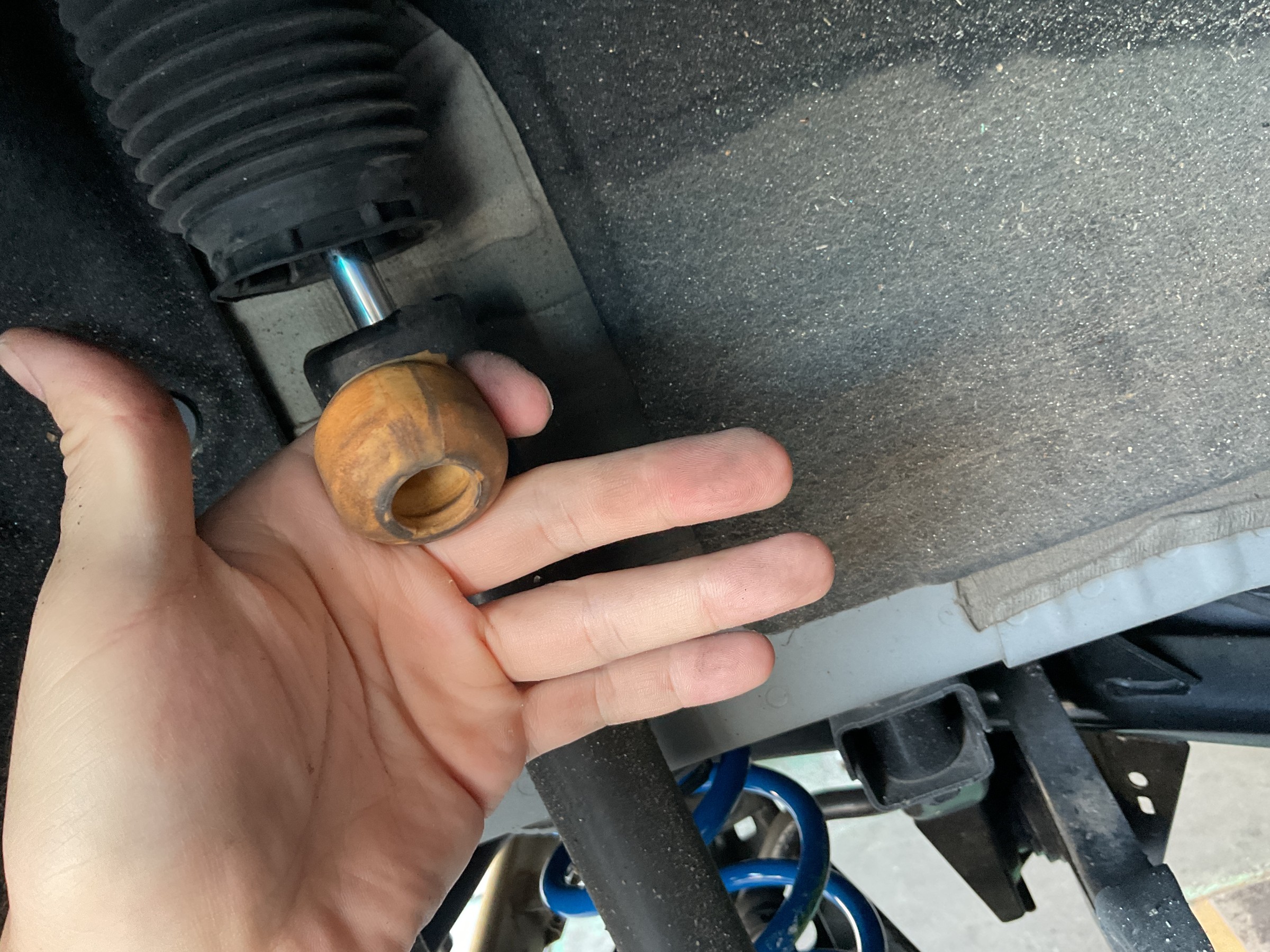 もし「車高調(もしくはダウンサス)を装着したのにあまり車高が落ちないな~」とか「せっかく乗り心地重視の車高調を入れたのに、乗り味が硬すぎて不満!」いう場合はアームブッシュの1G締めをしていないことによってブッシュが突っ張っているのかもしれませんね(;゚д゚)
