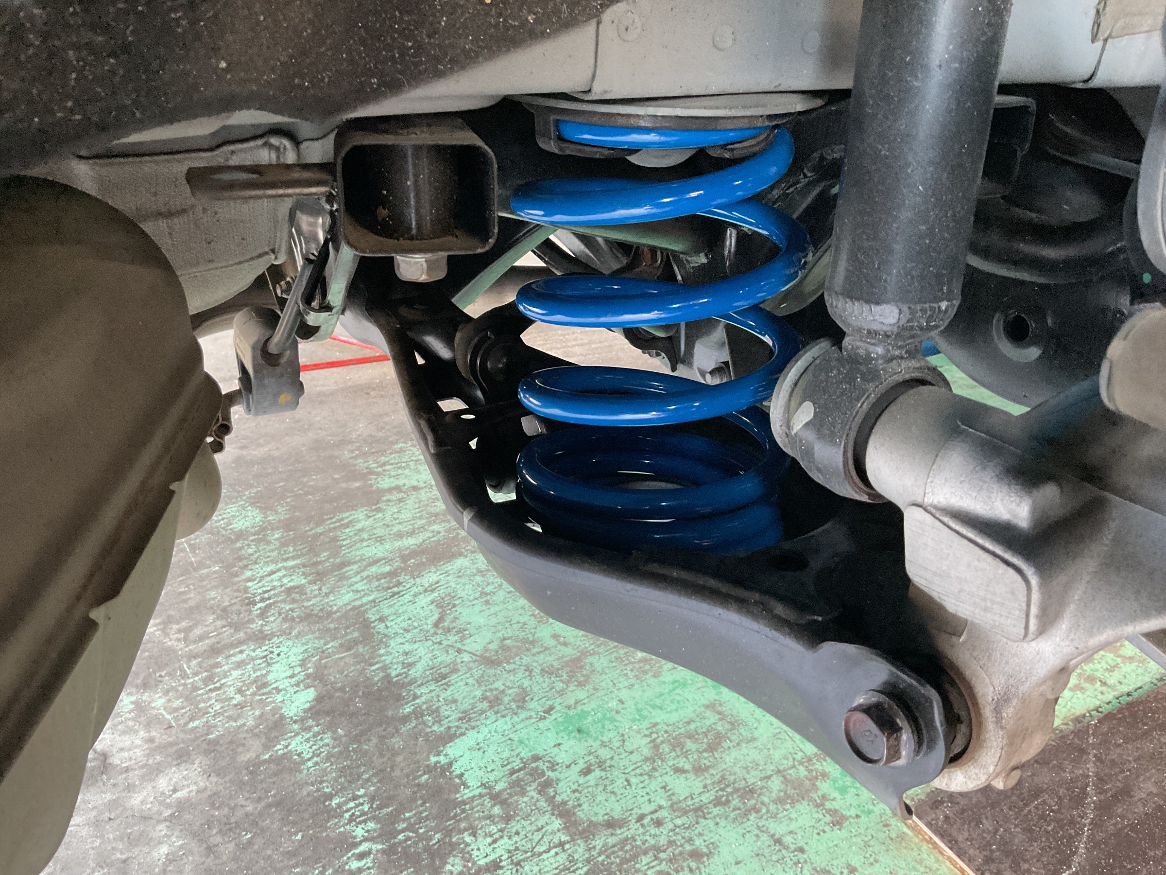 ダウンサスを取り付けしたら、4輪にしっかり荷重をかけた状態で1G締め!