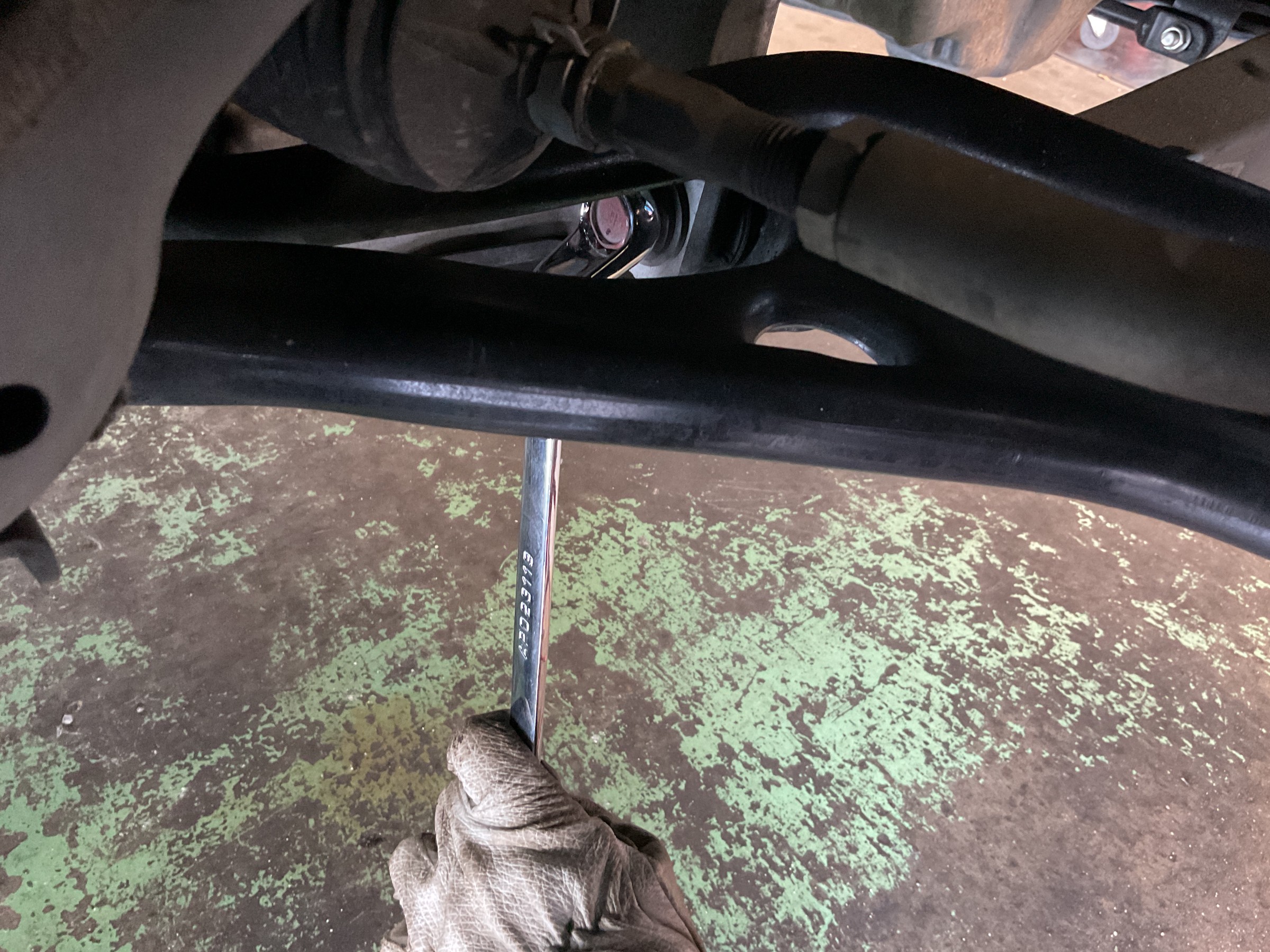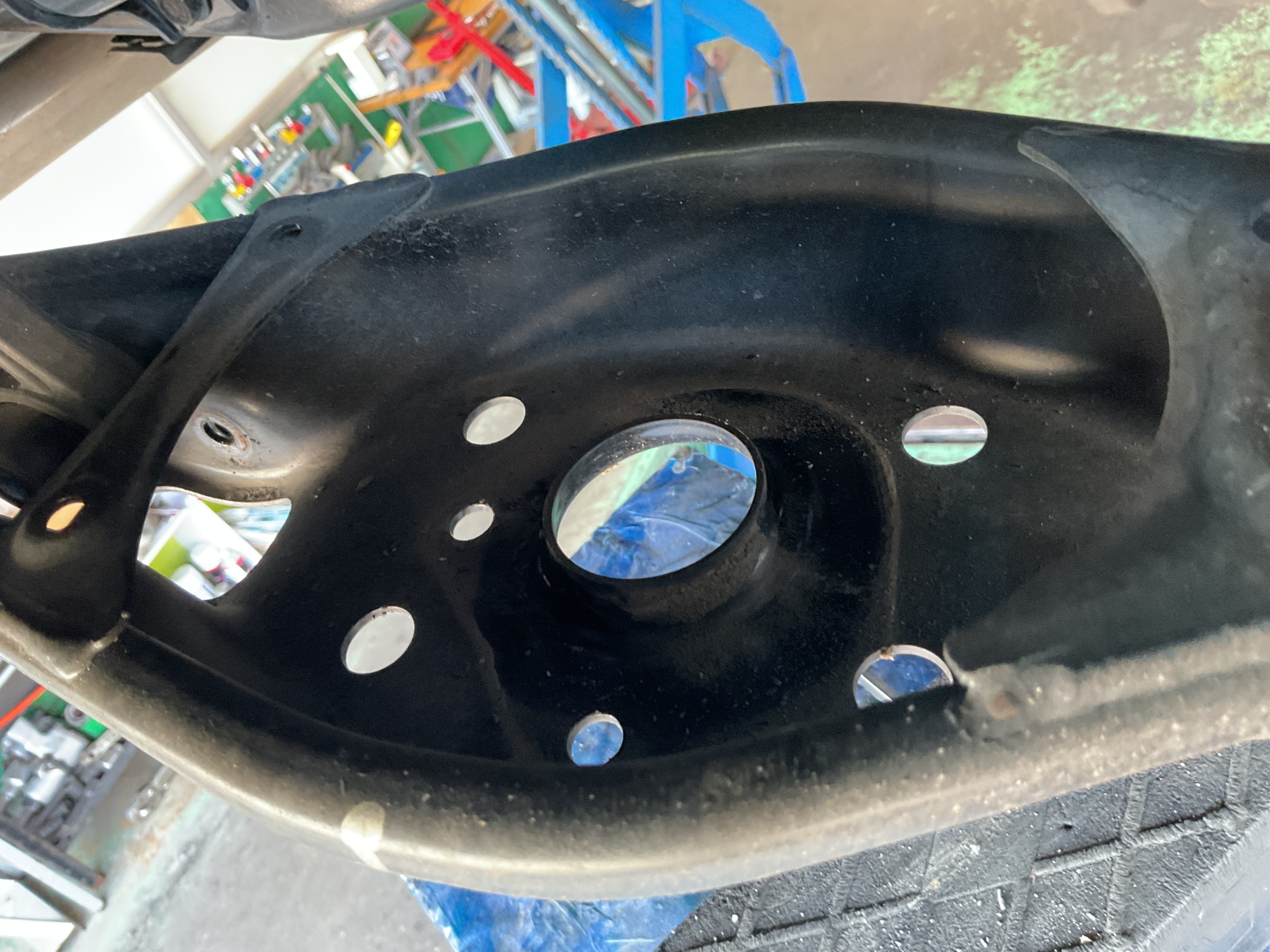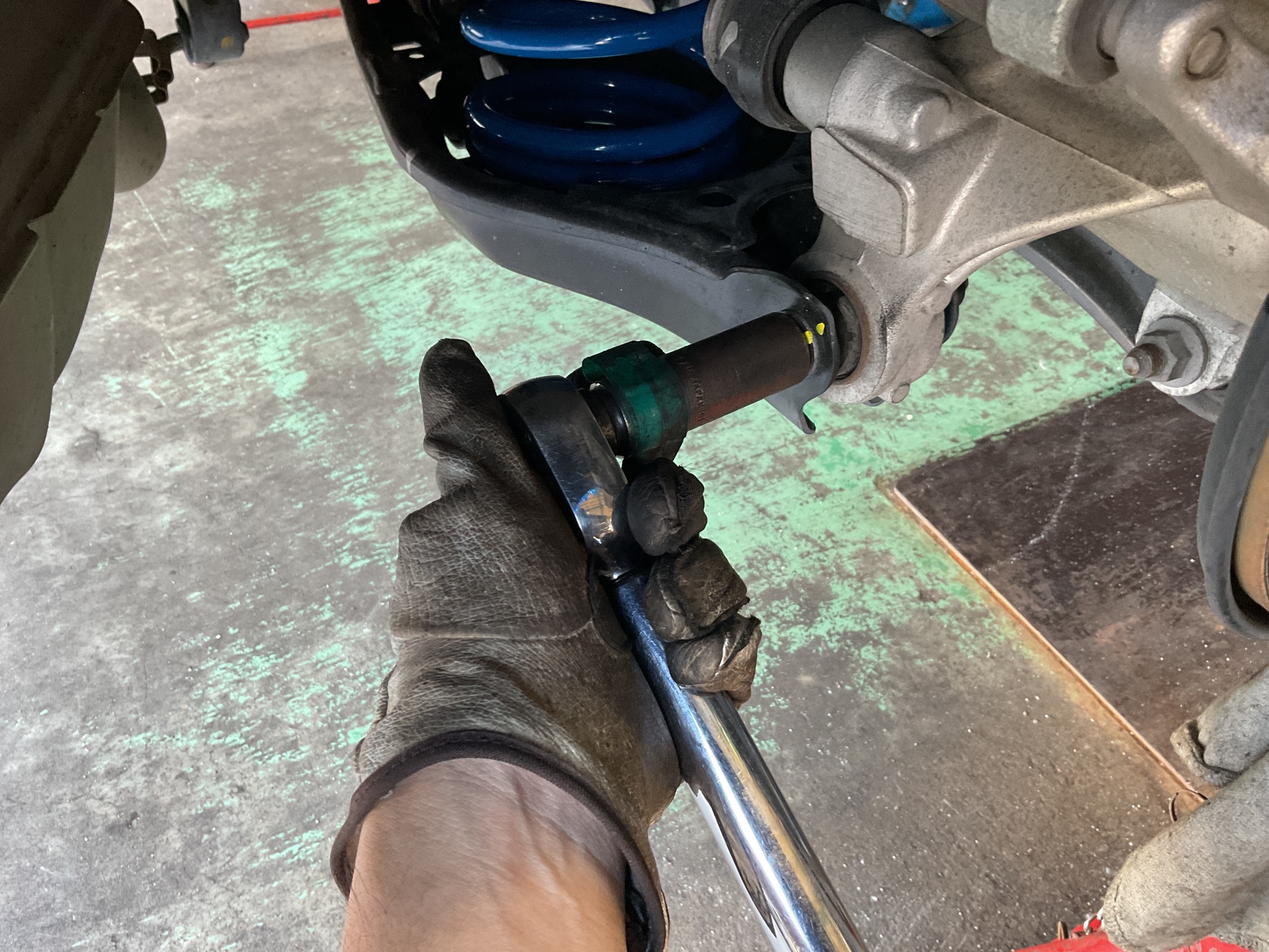 1G締めは疑似的に“タイヤを装着して接地させた状態”を作り出し、その状態で捻じれてしまっている各ブッシュのテンションを締めなおすことでアームブッシュのニュートラル位置を現状のローダウン状態に合わせてあげる作業ですヾ(゚д゚)ノ゛