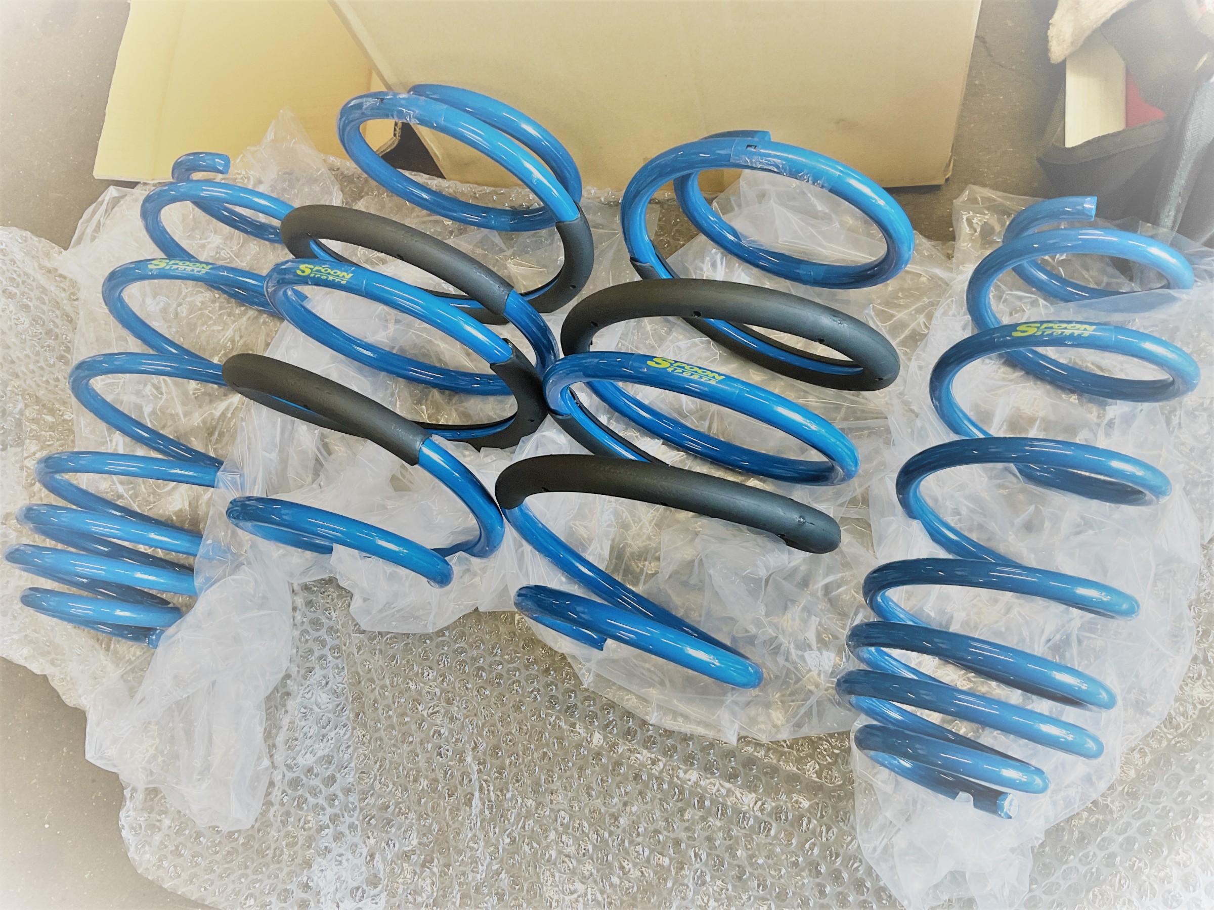 今回装着させていただくのは、ホンダ車ですと指名買いが多いSPOONのプログレッシブスプリング!(ノ゚∀゚)ノ