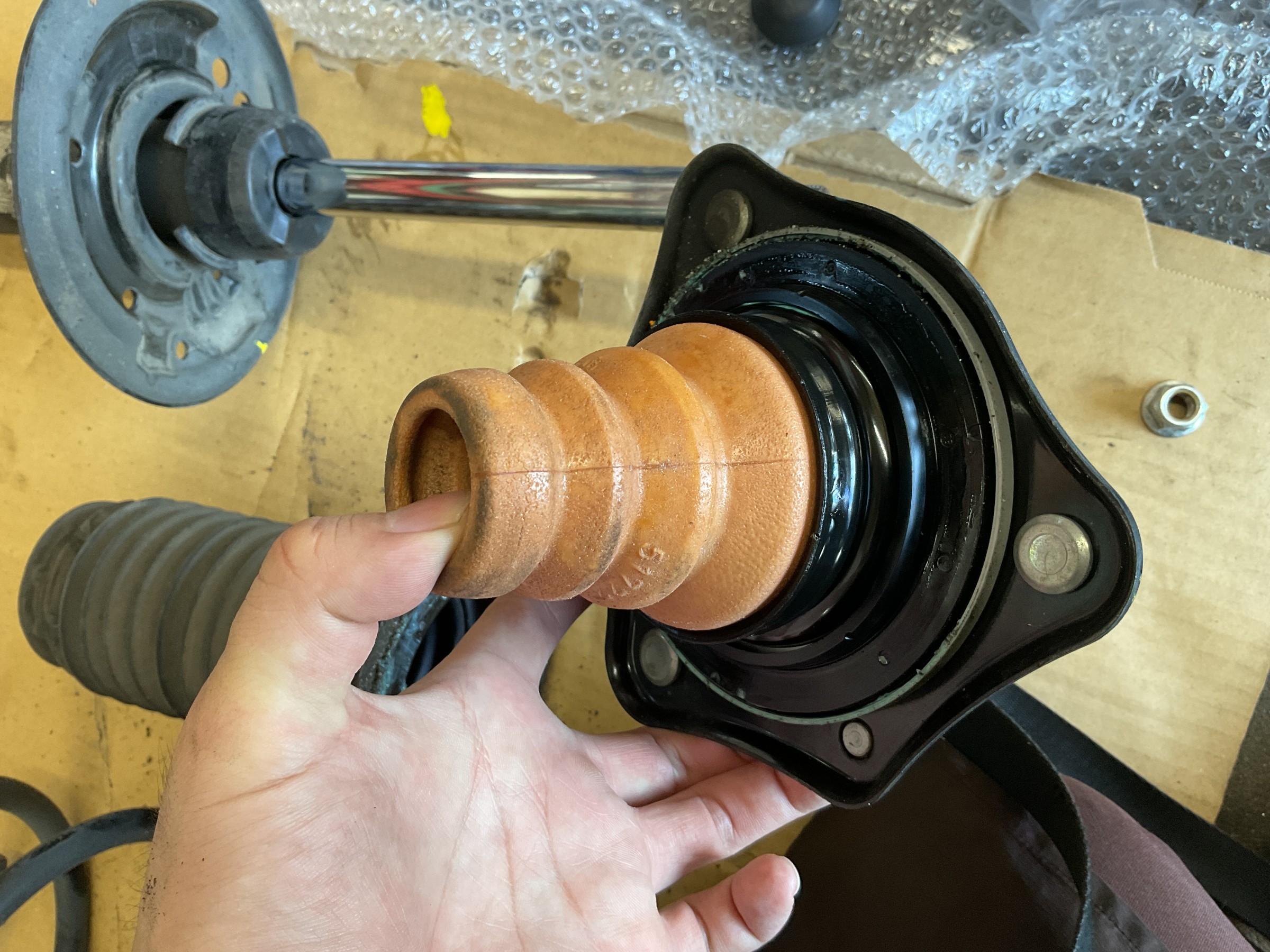 リアショックのバンプラバーもカットして、