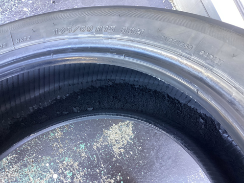 空気圧が正常ではない状態での走行により、内側のゴムが削れてしまっています。