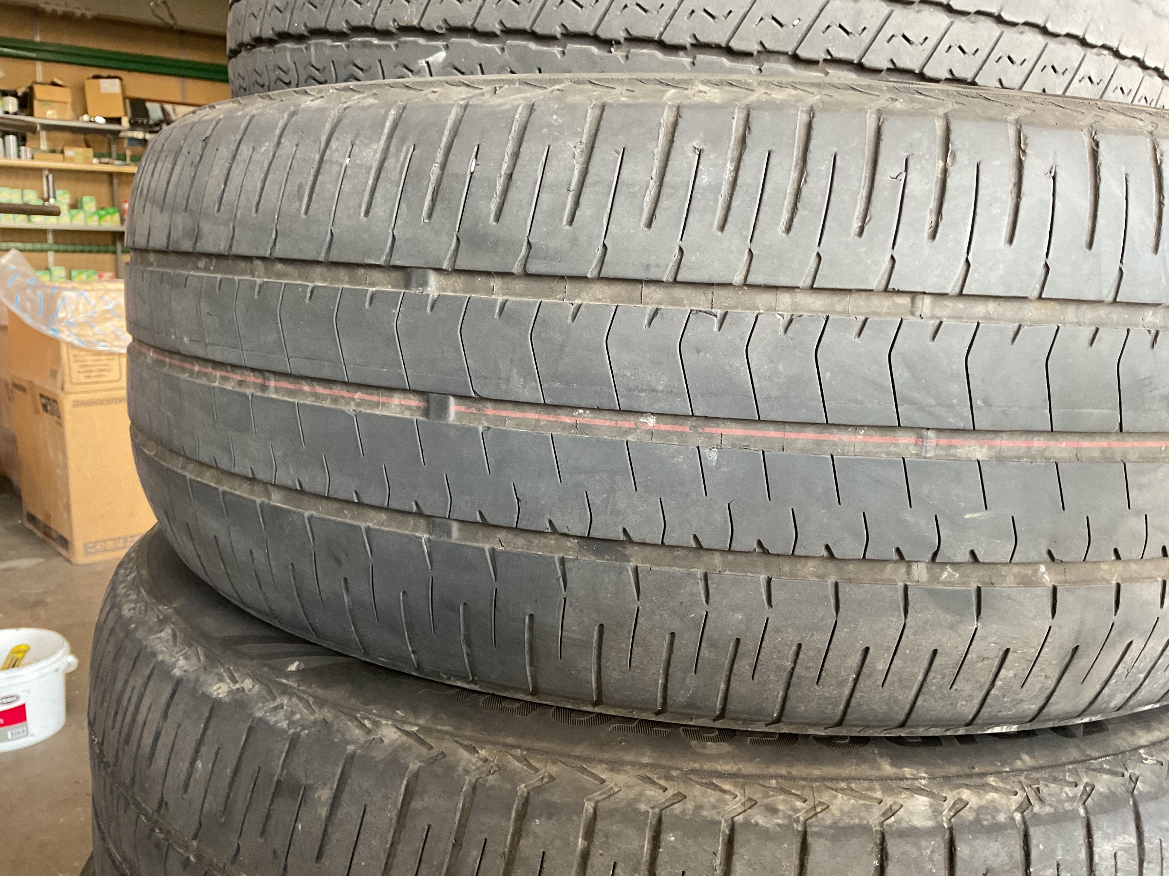 外した交換前のタイヤは摩耗がかなり進んでおり、溝深さが浅くなっております。