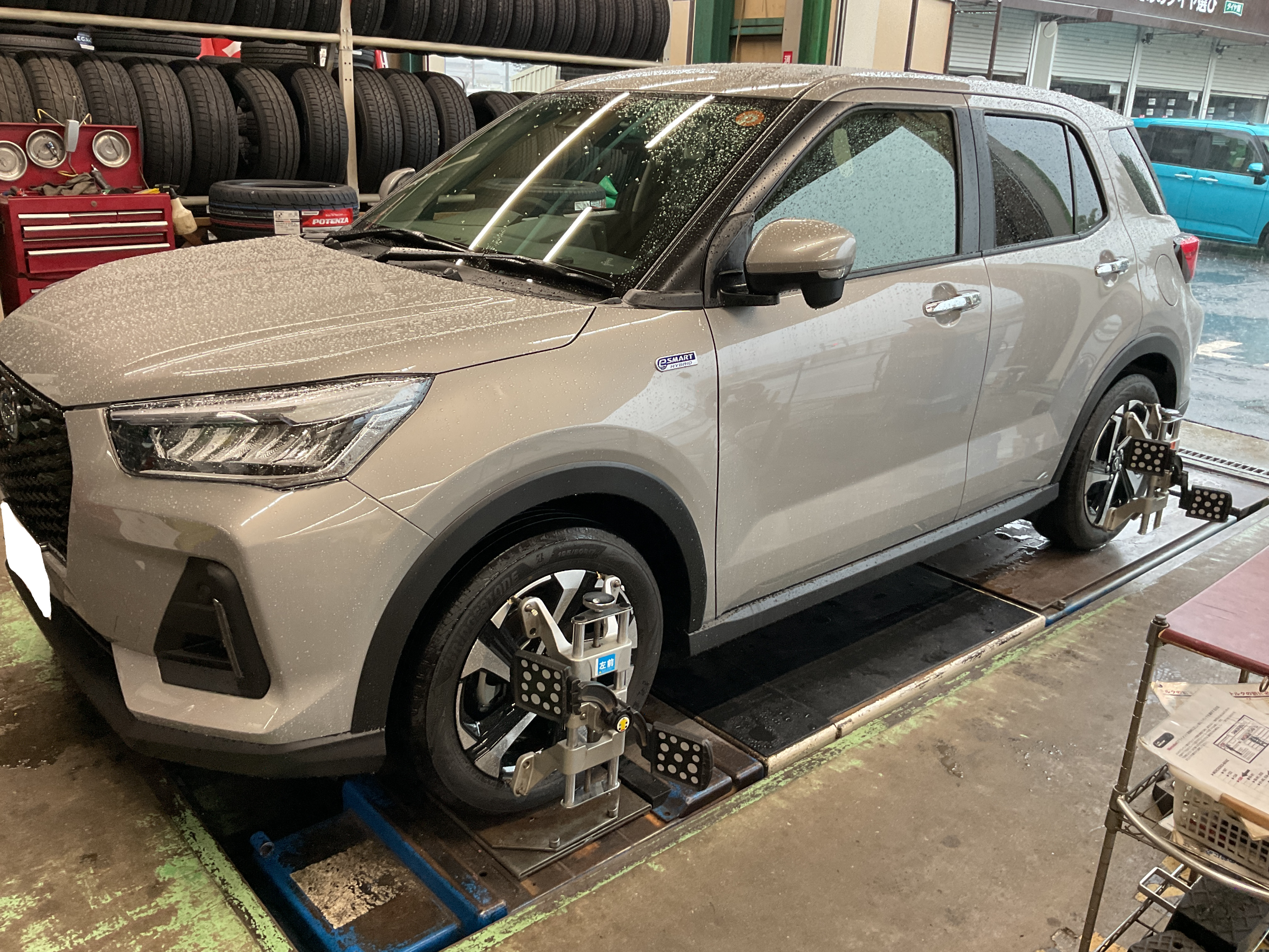 走行距離300kmに満たないロッキーHVのアライメント調整です。