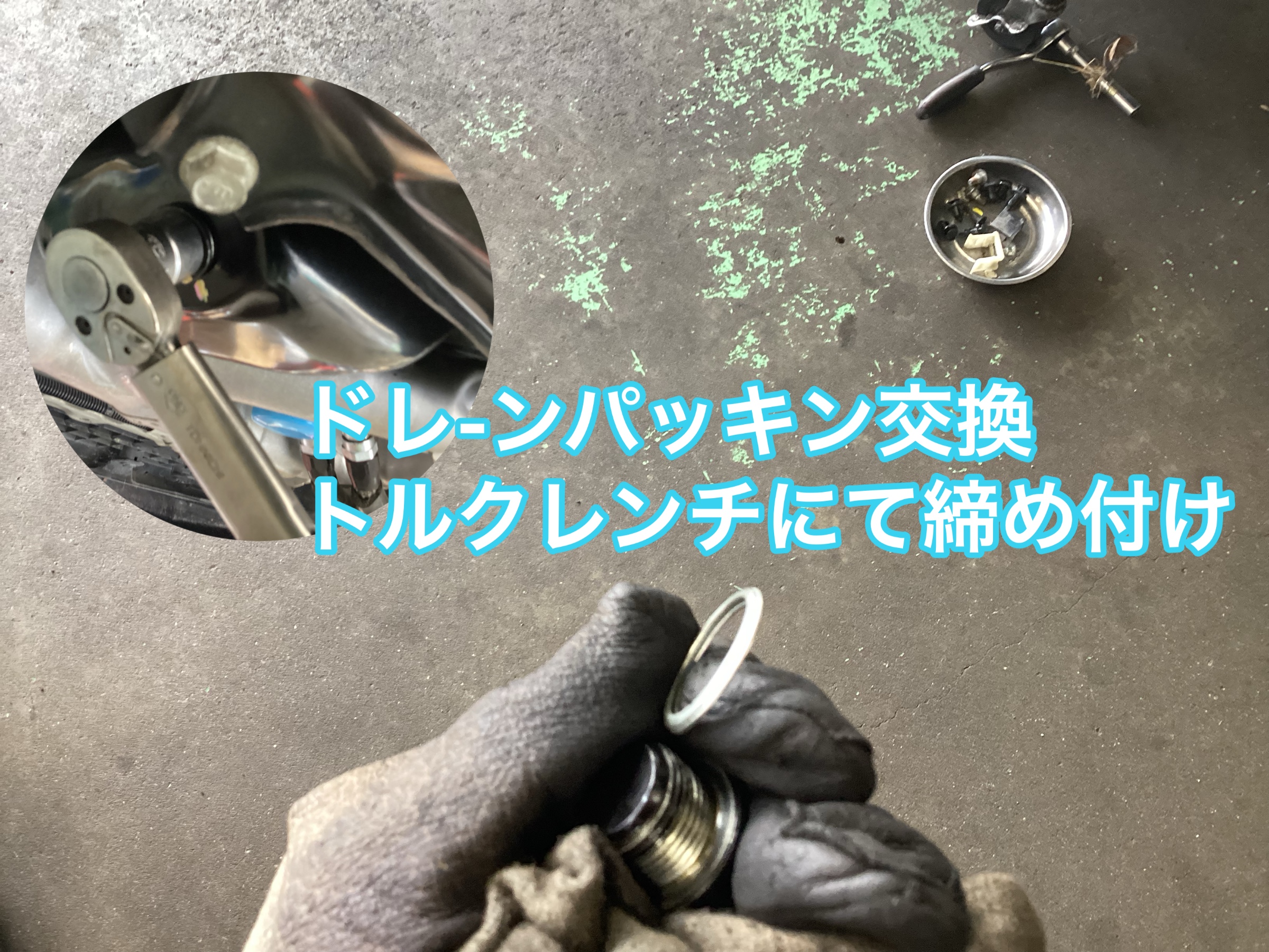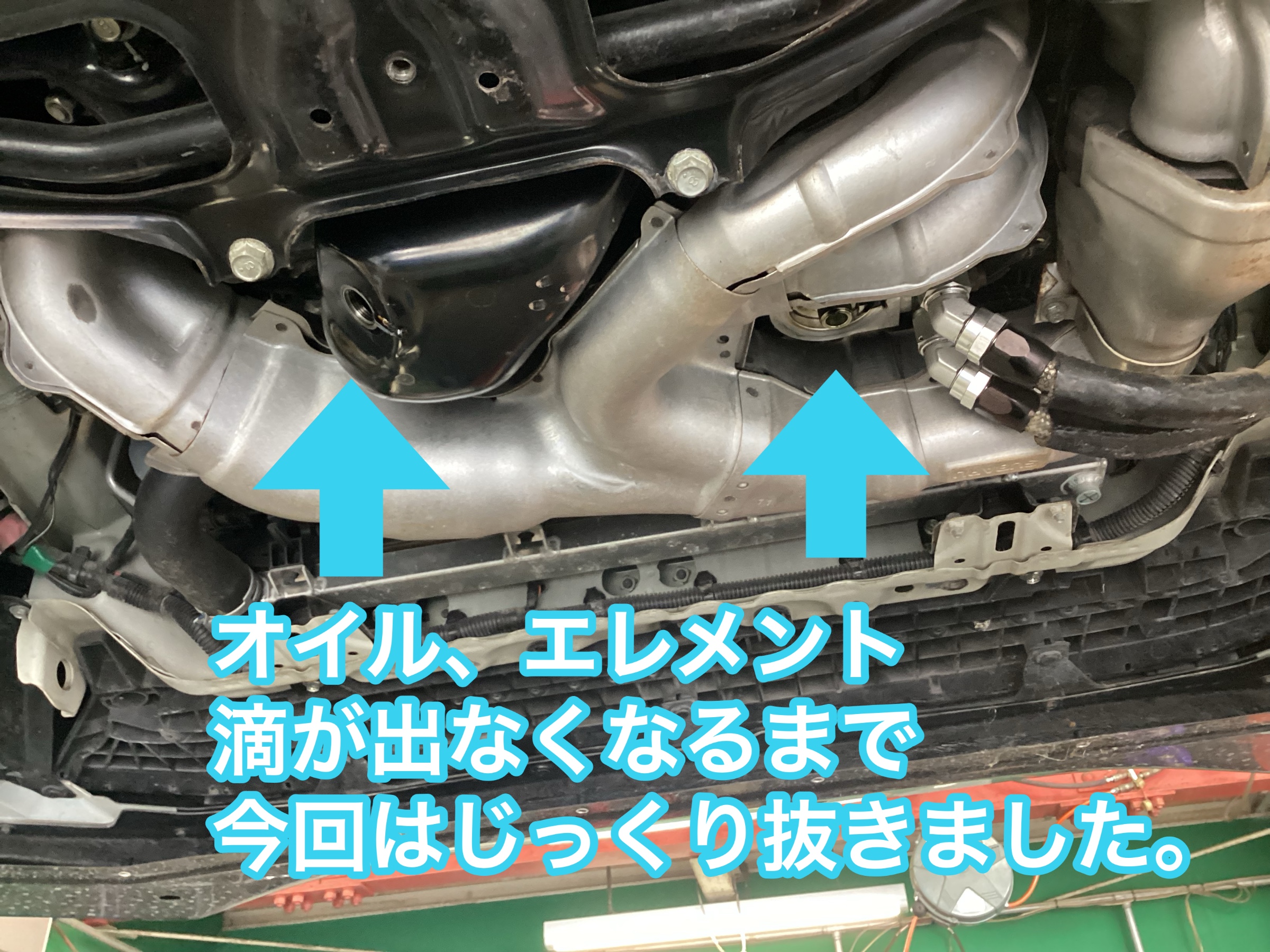 今回は下抜きにてエンジン内部の前回のオイルが出来るだけ混ざらないように時間をかけてオイル滴が出ない