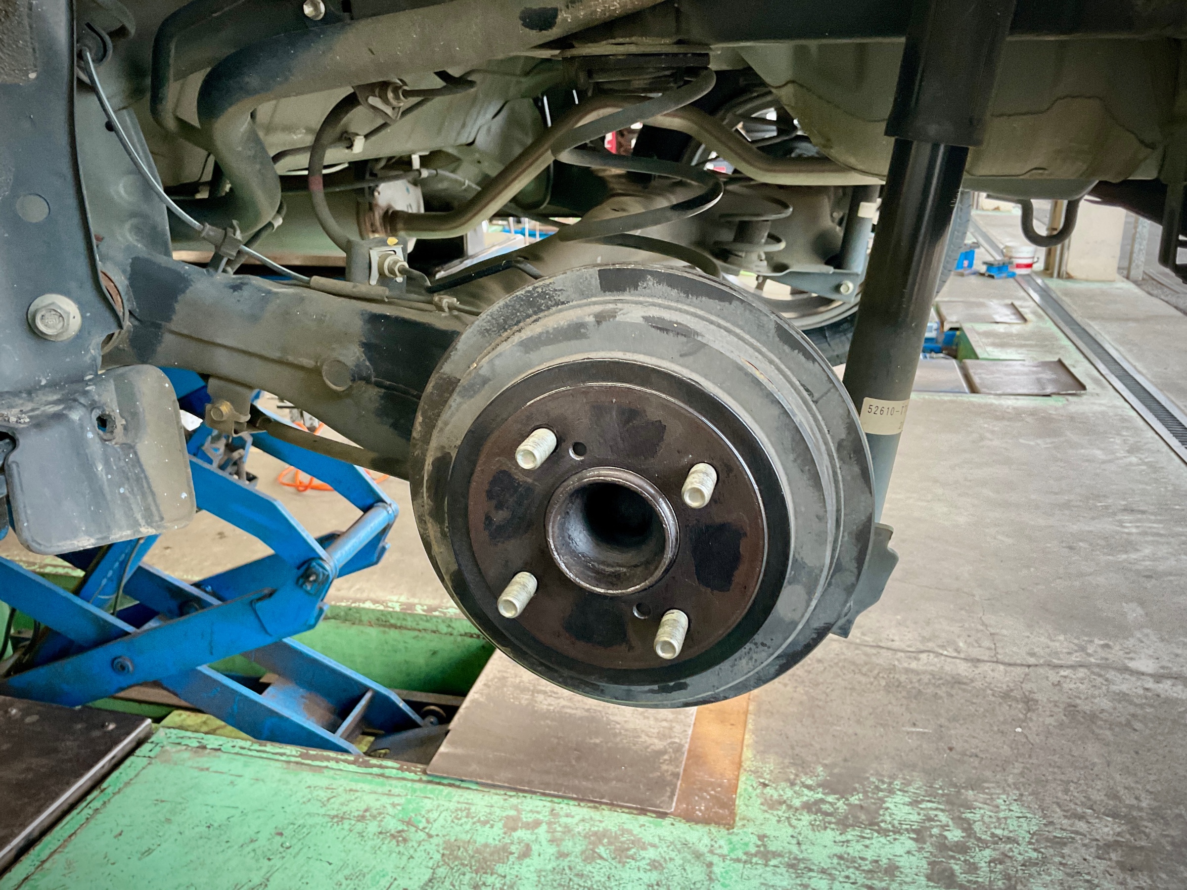 リフトアップしてタイヤホイールを取り外し作業開始です!