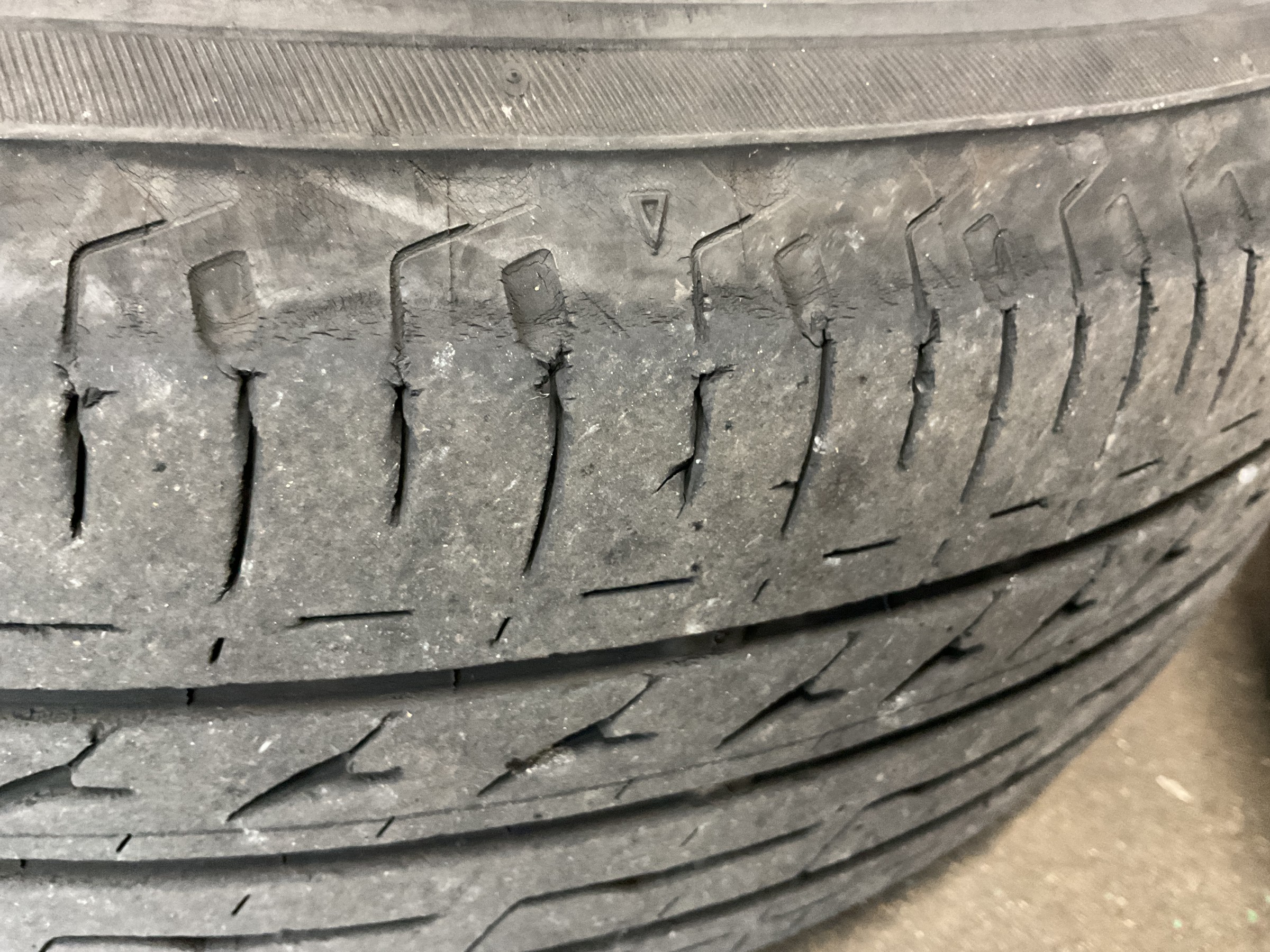 約4年ご使用していただいて、残溝はありましたが、少々ヒビが入りブロックが欠けている部分があったので交換時期でした。