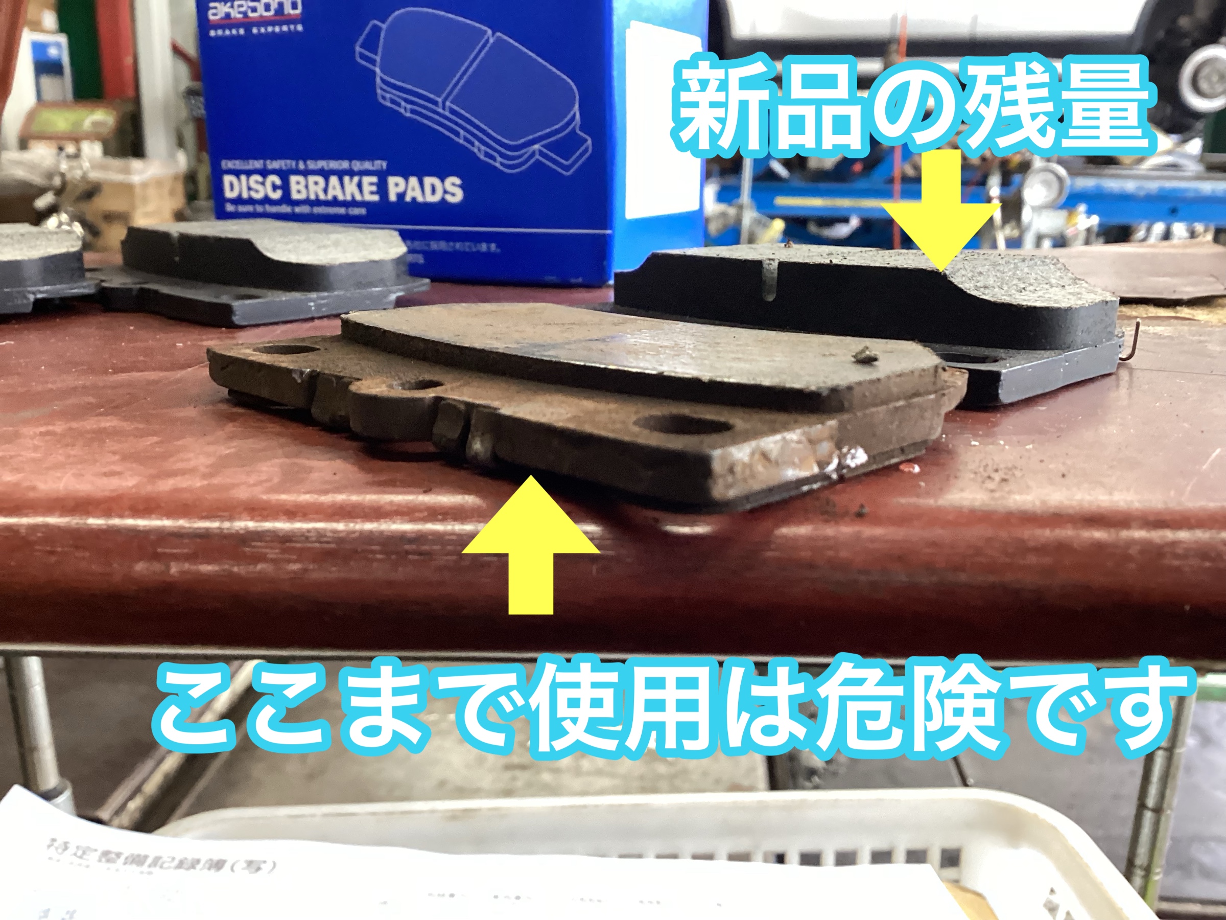 前回タイヤ交換時の点検にてブレーキパッド残量が僅か1ミリ位でしたのでお取り寄せにて