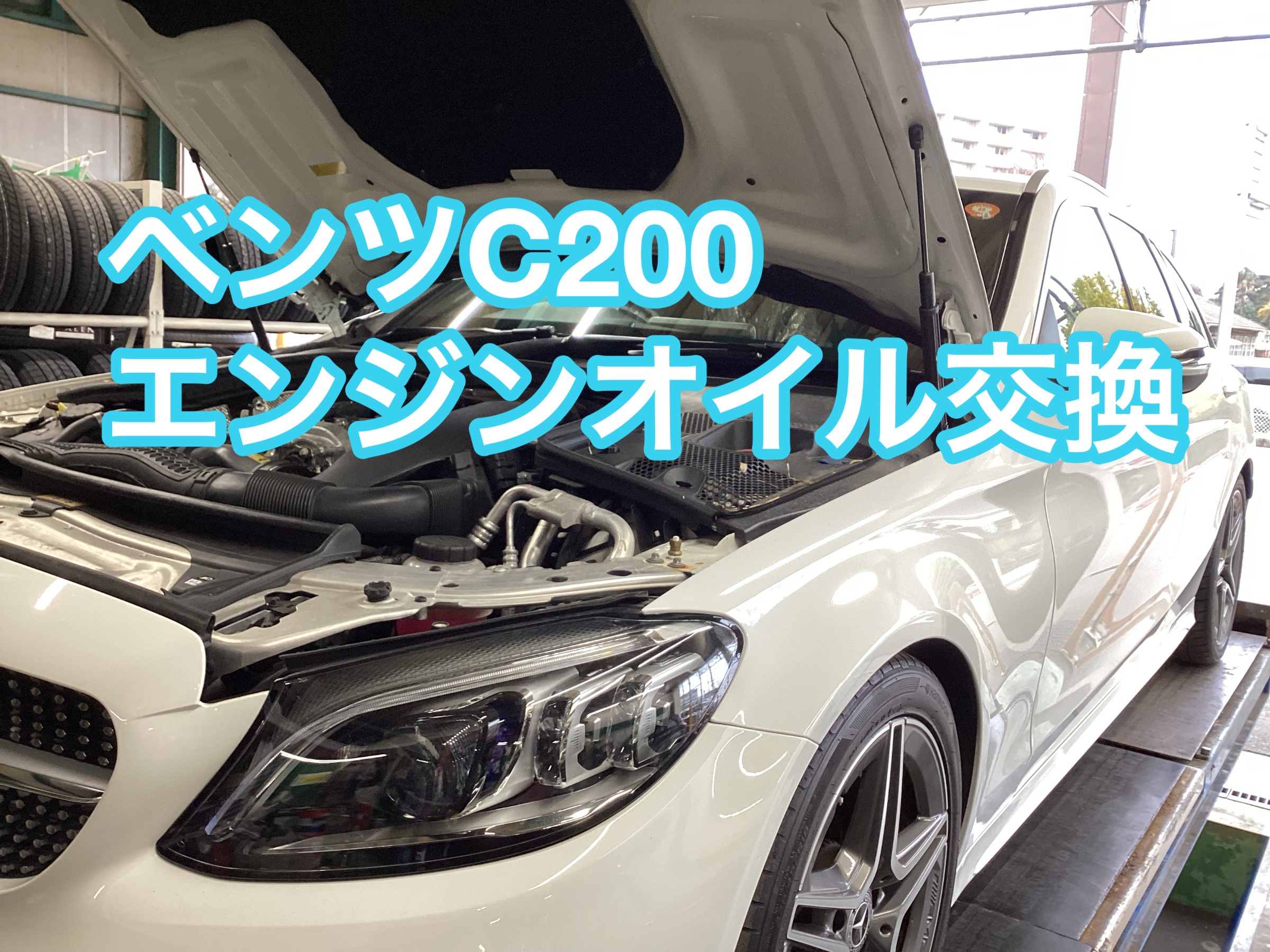 ベンツC200 エンジンオイル交換 タイヤ館八千代 作業WEB予約受付しております