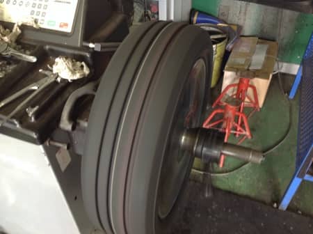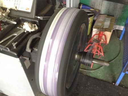 写真③、④はタイヤ交換時に行っているバランス調整です。