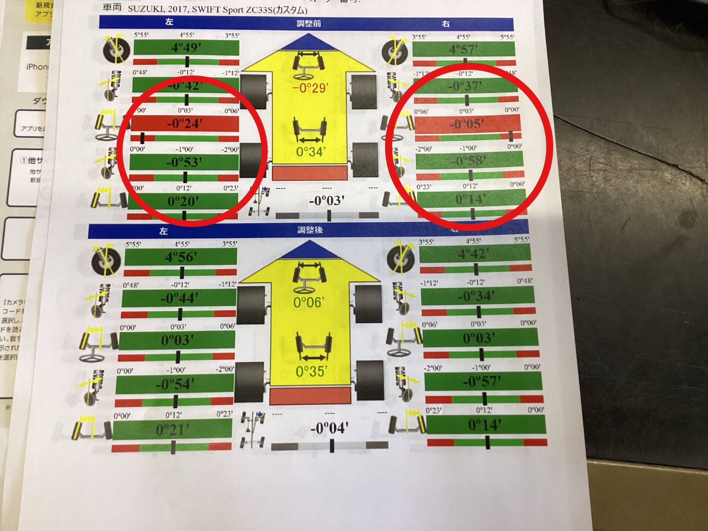 スイフトスポーツ ZC33 アライメント調整