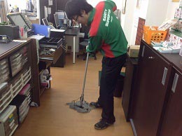 営業終了後に店長.スタッフが床の手入れをしています。次の日にお客様を気持ち良く