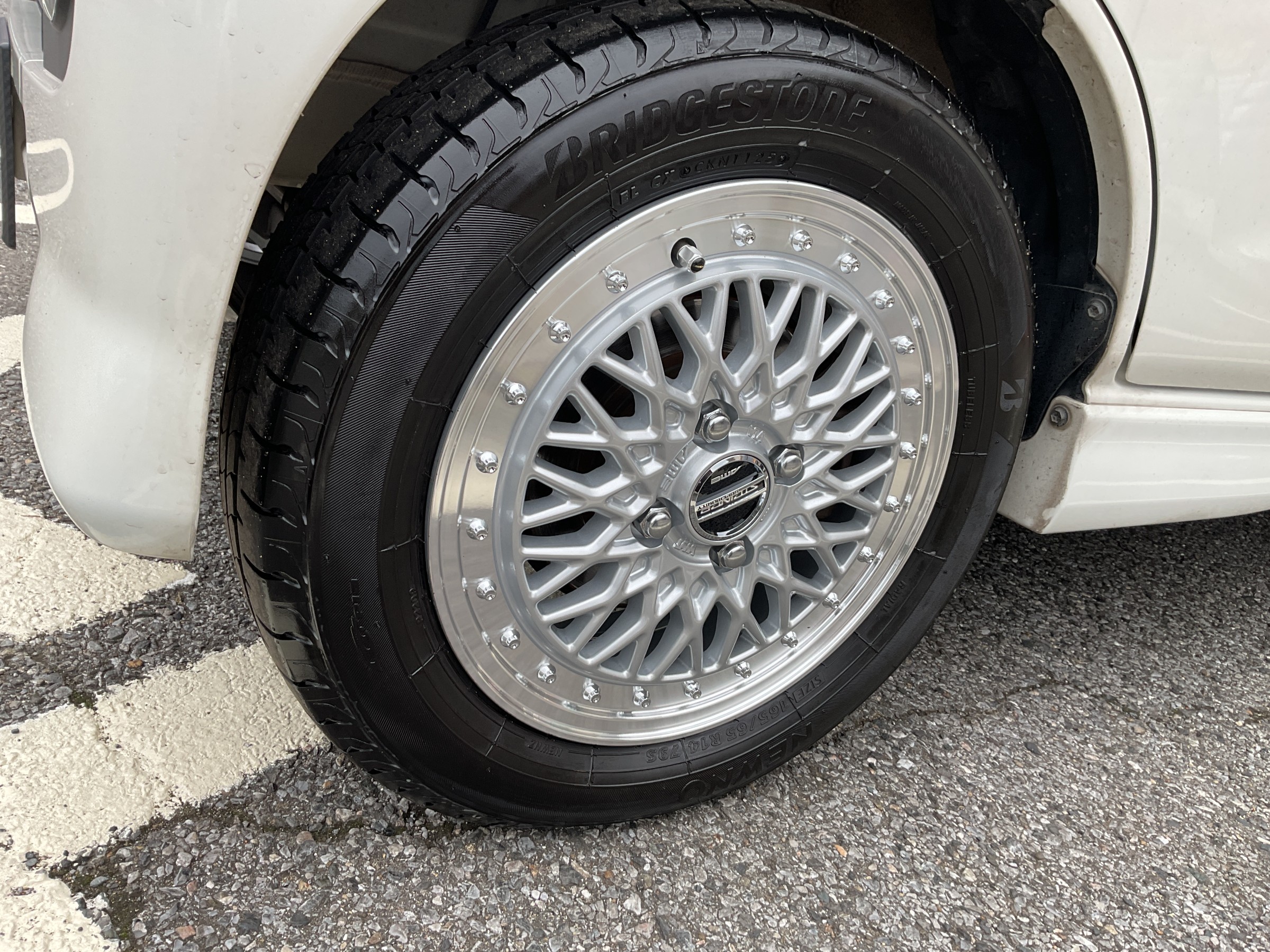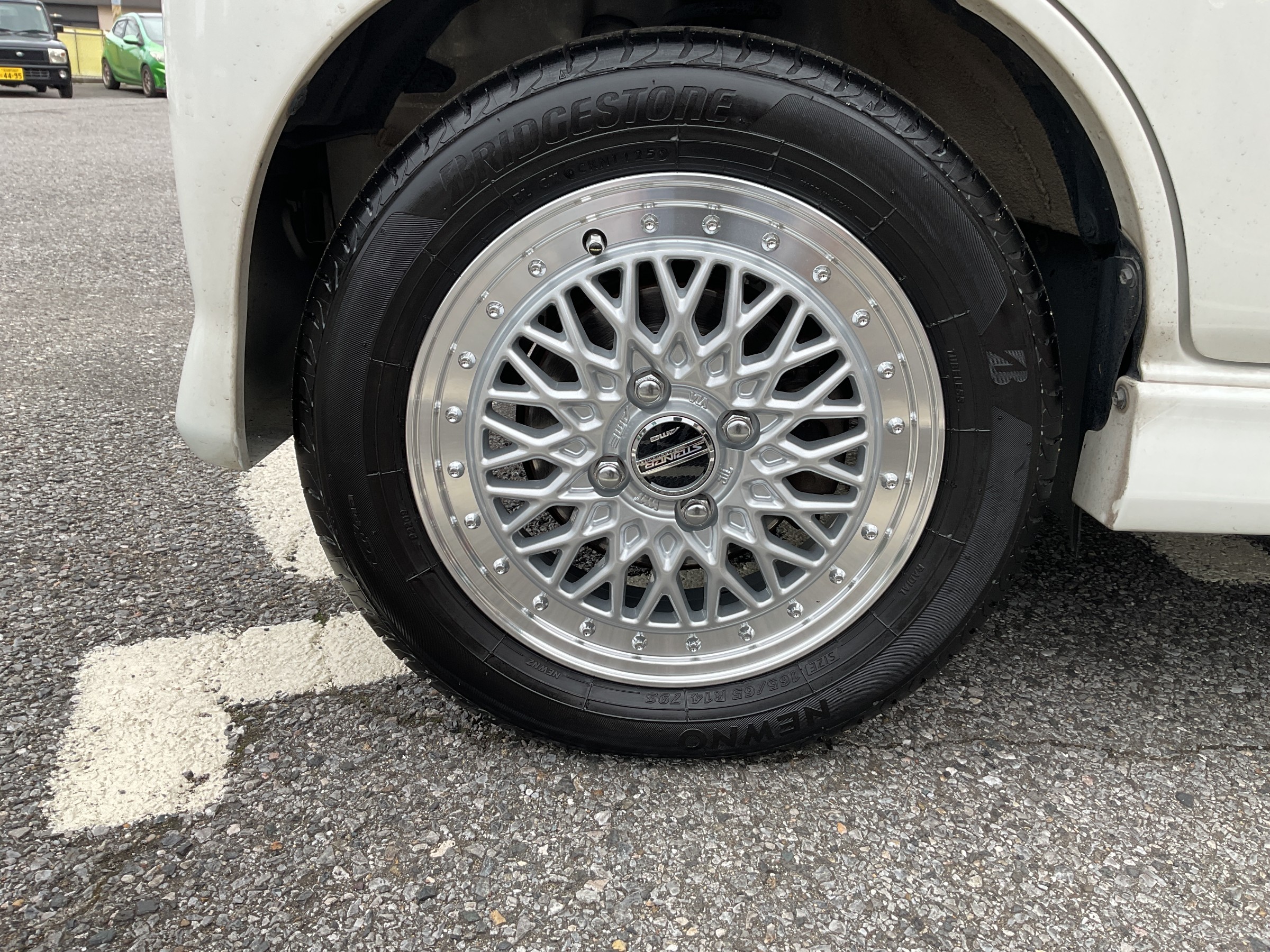この旧車風の雰囲気を持つホイールがお客様のセンスに刺さり、アウトレット品ということで超お買い得価格で販売していたのでほぼ即決で購入が決まりました(っ´∀`)っ