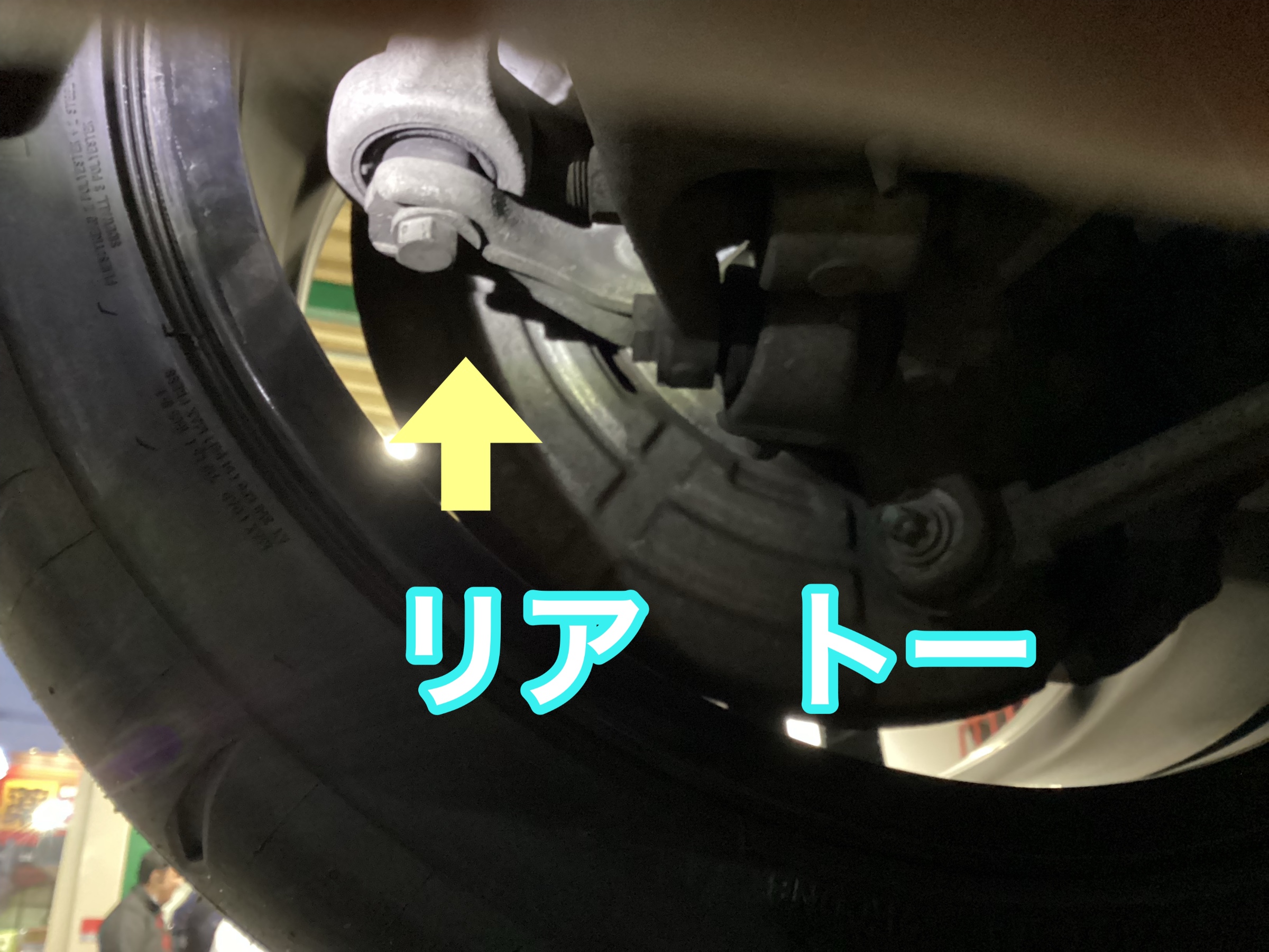 BMWアライメント調整 調整ヶ所はフロントトー調整 リアトー リアキャンバーの