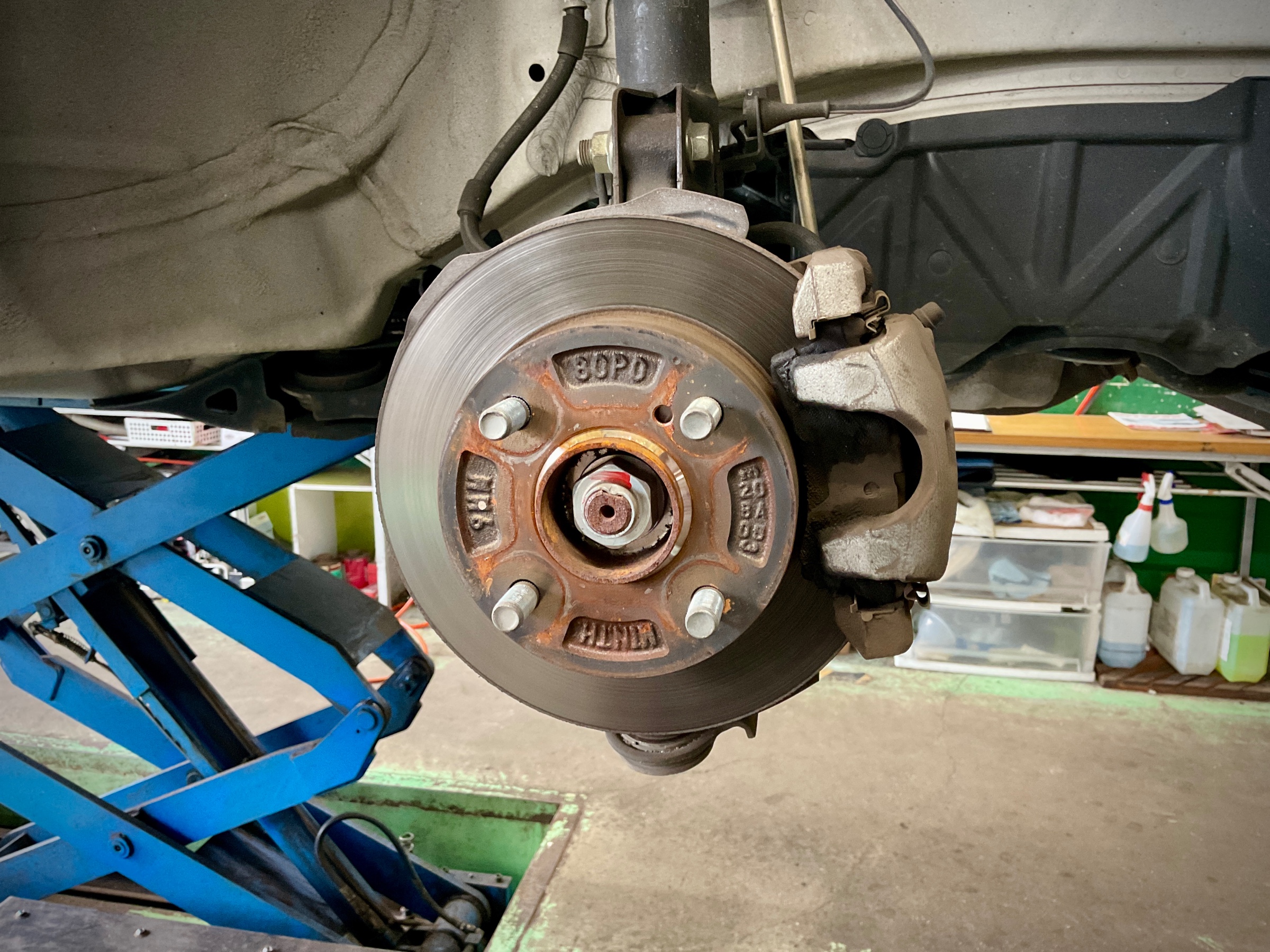 タイヤホイールを外してみるとハブ面に赤サビが発生していますね。