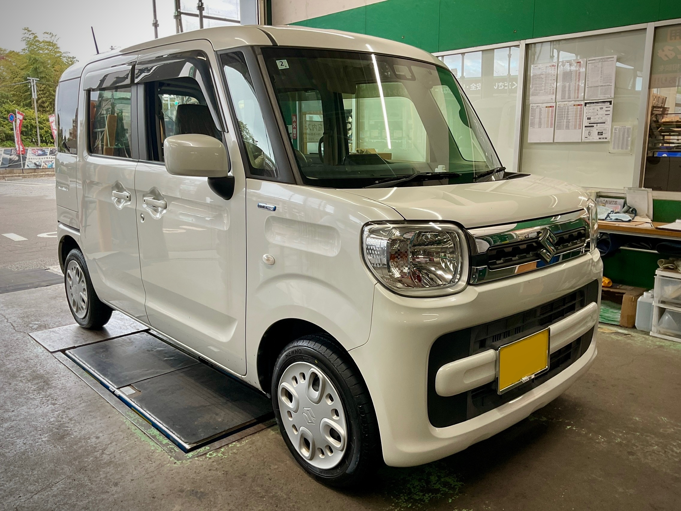 今回タイヤ交換するのはこちらのスペーシアです。