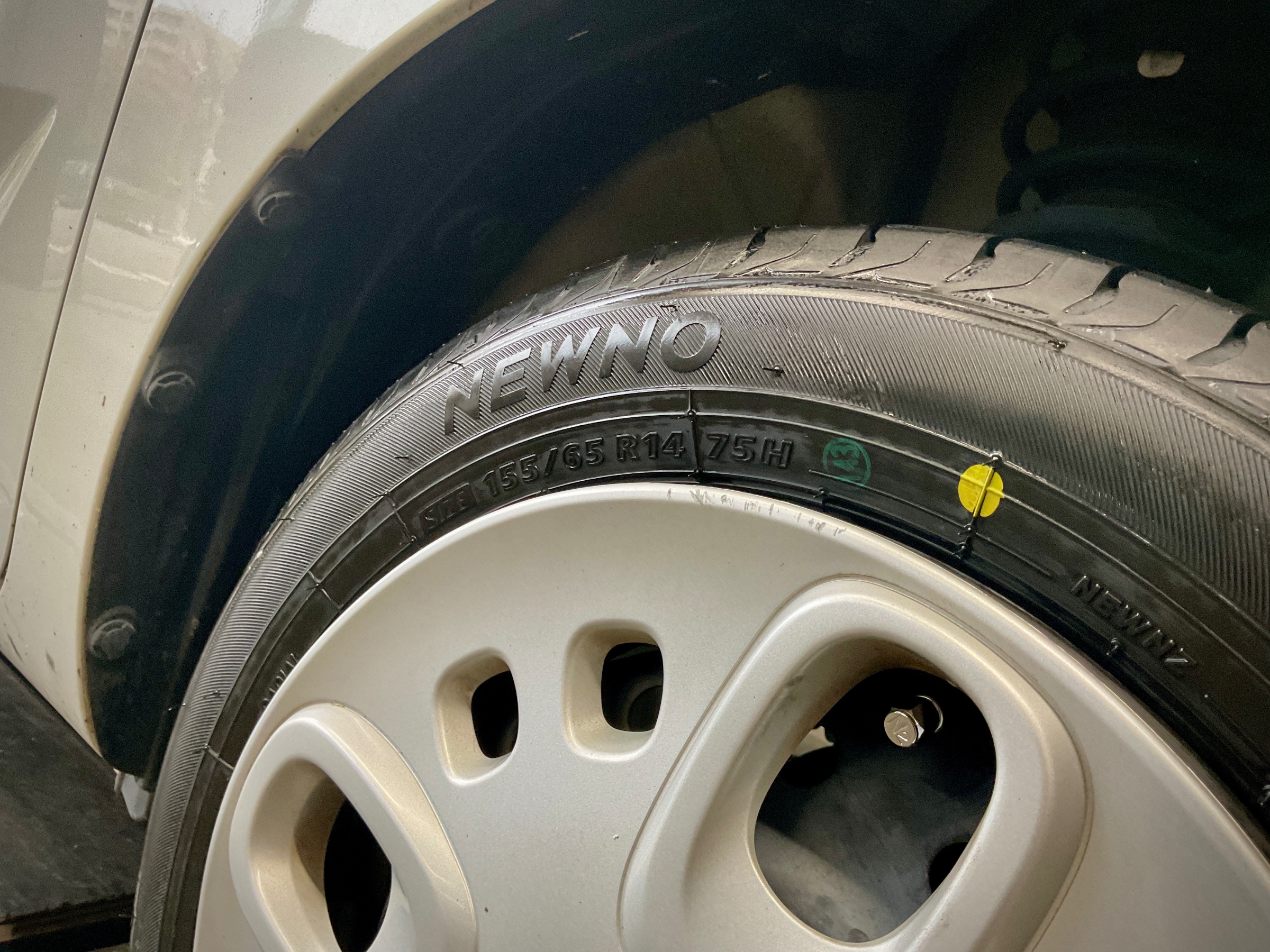 タイヤサイズは155/65R14 75Hです。
