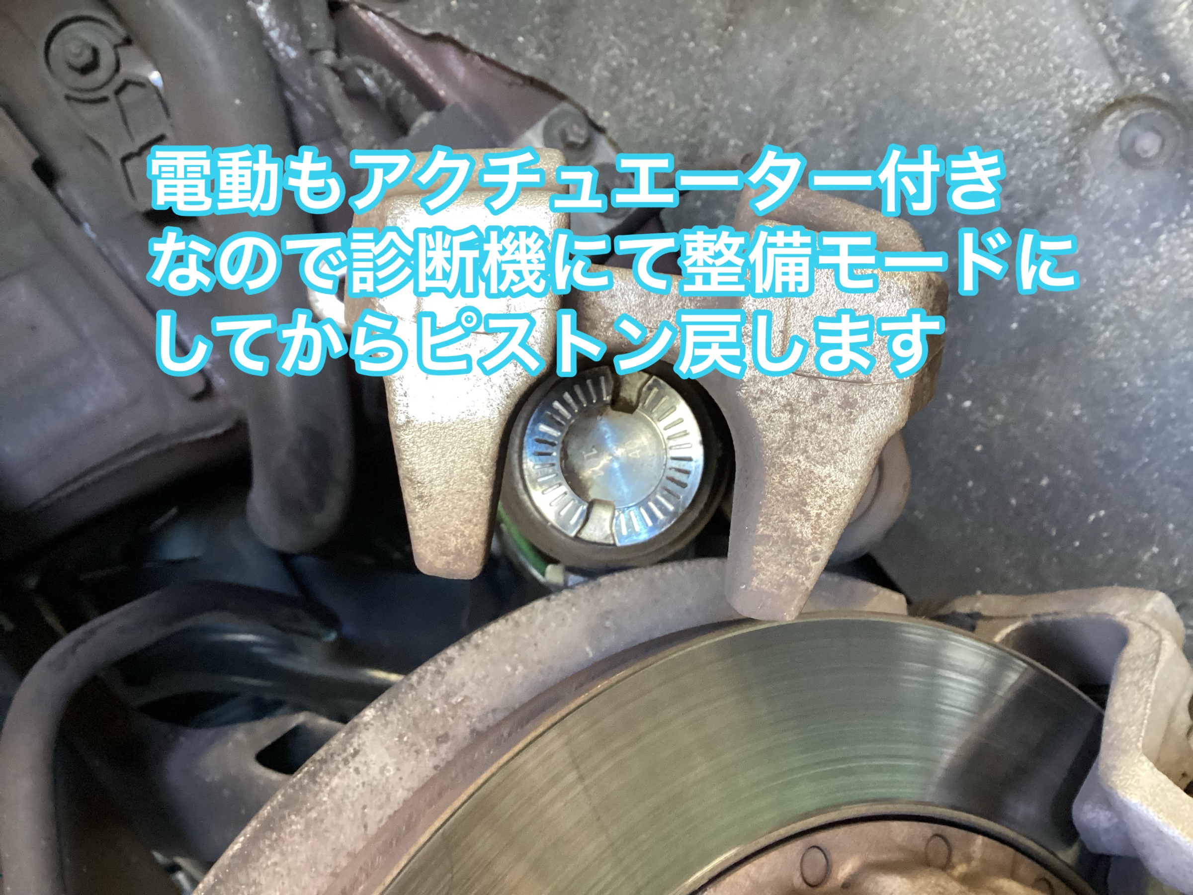 BMWのリアブレーキパッドは電動パーキング式なので診断機にて整備モードにしてから作業を行います。